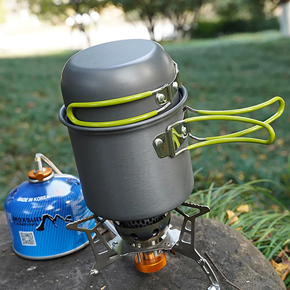 Camping Cookware Kit with Stove Outdoor Cooking Set with Knife Fork Spoon Outdoor Pot Travel Tableware Kitchen Hiking Picnic BBQ