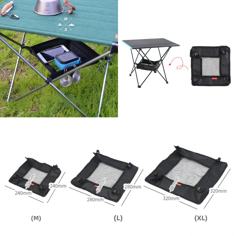 Camping Table Hanging Net Basket M L XL Folding Table Storage Rack Portable Mesh Bag Hook Holder for Outdoors Cookware Organizer