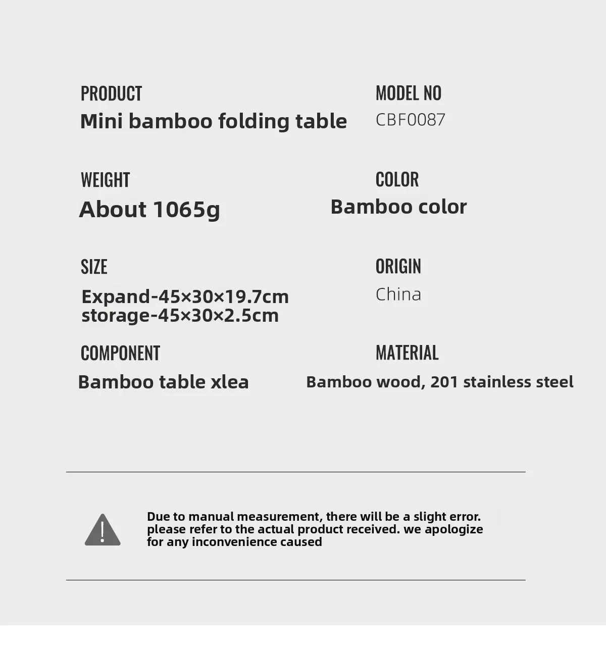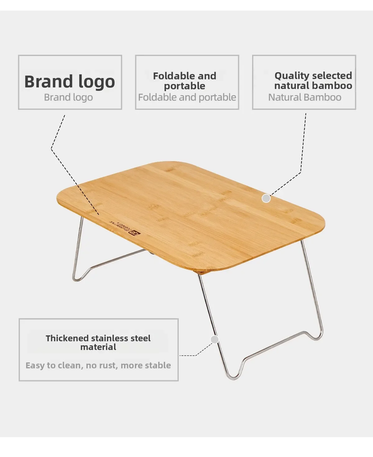 MOUNTAINHIKER CLS Outdoor Mini Folding Table Camping Picnic Bamboo Wood Table Portable Home Car Table Bamboo Stainless Steel
