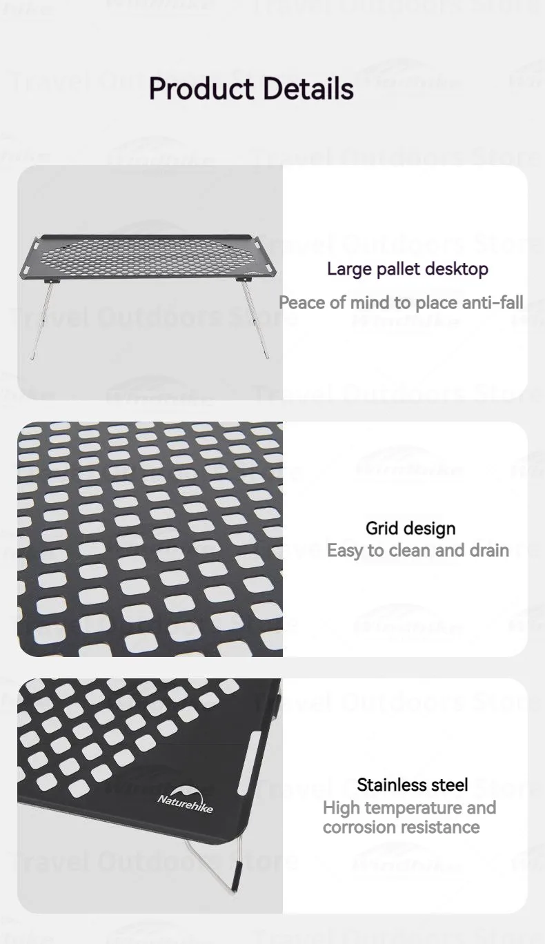 Naturehike Outdoor Folding Table Stainless Steel Camping Table Picnic Barbecue Chicken Rolls Outdoor Table Portable Picnic Table
