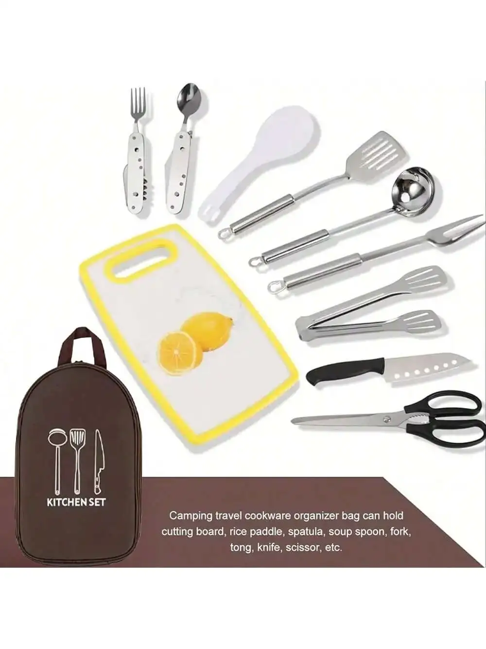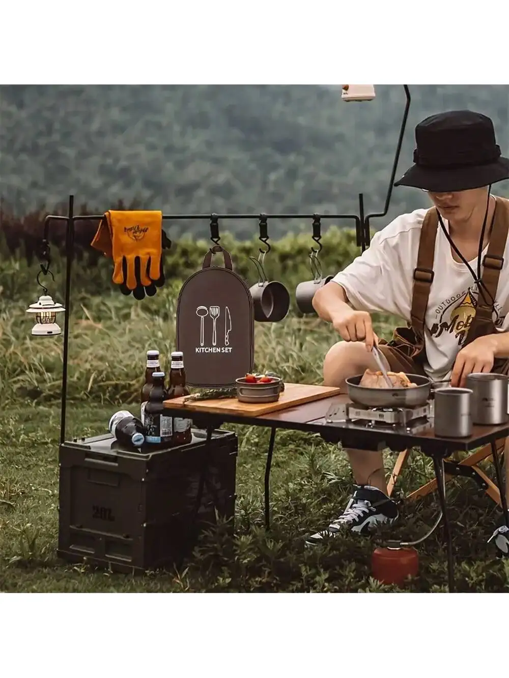Outdoor Camping Cookware Storage Bag Cooking Utensil Organizer Kitchen Ware Container Bag Portable Picnic BBQ Tableware Pouch