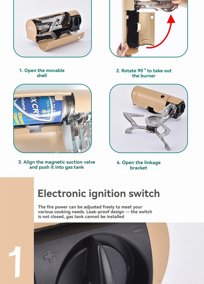 Outdoor Camping Stove Portable Camping Hiking High-Fire Integrated All-in-One Gas Burner Outdoor Backpacking Camp Cooker
