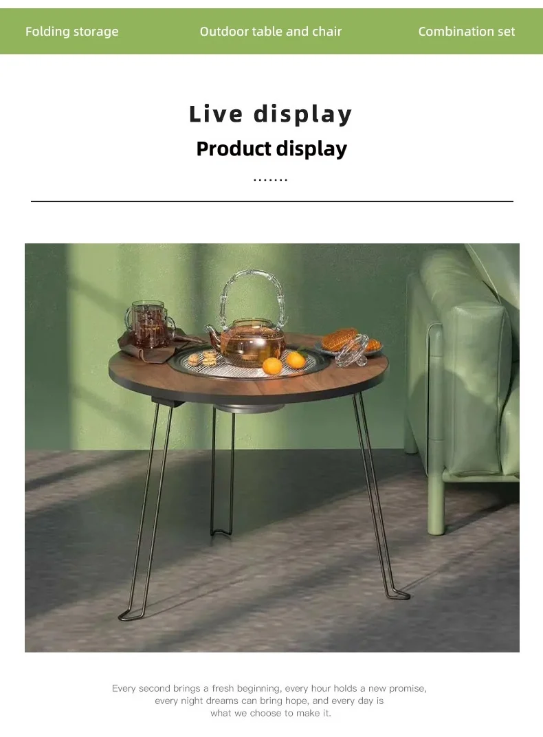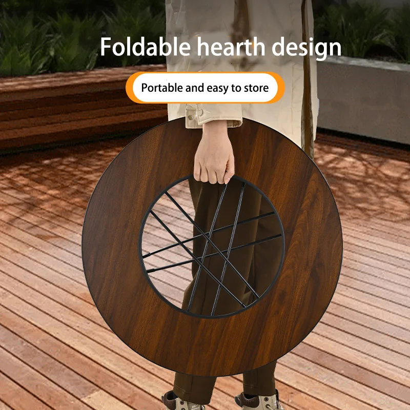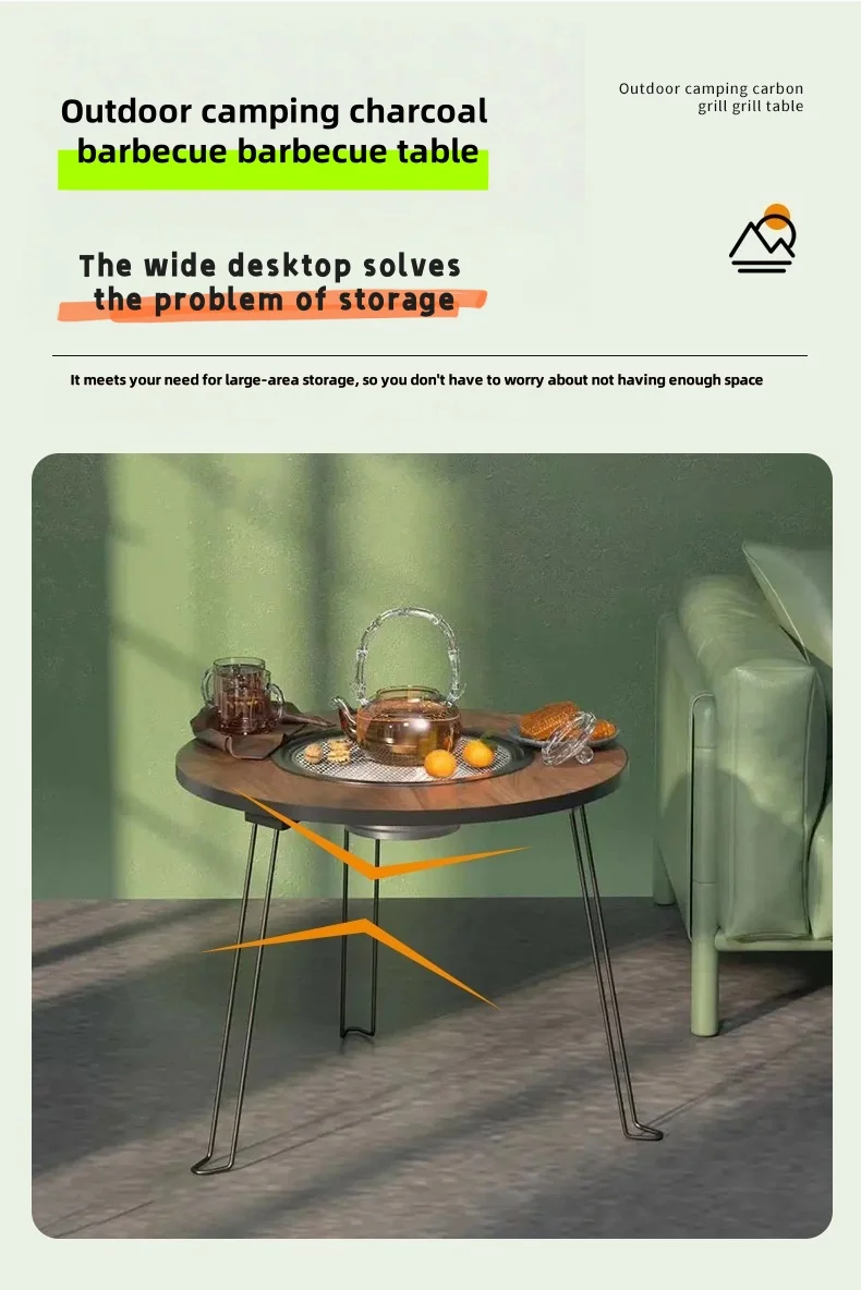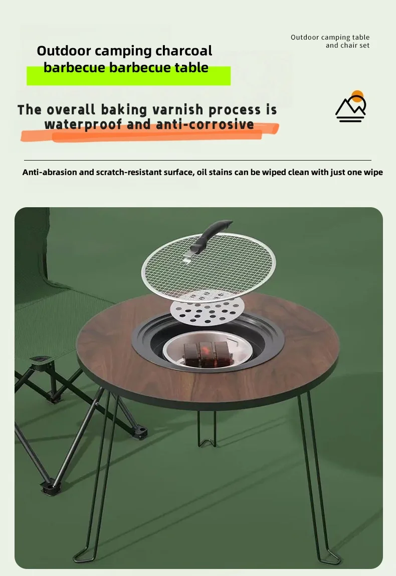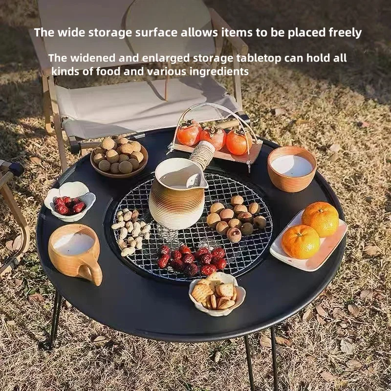 Portable foldable round table barbecue grill, smokeless barbecue grill, suitable for outdoor camping and party gatherings