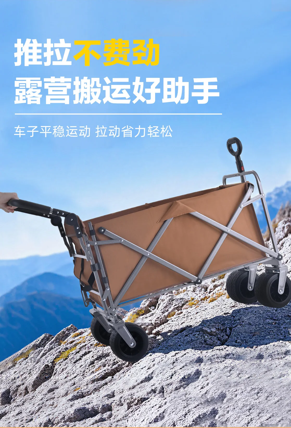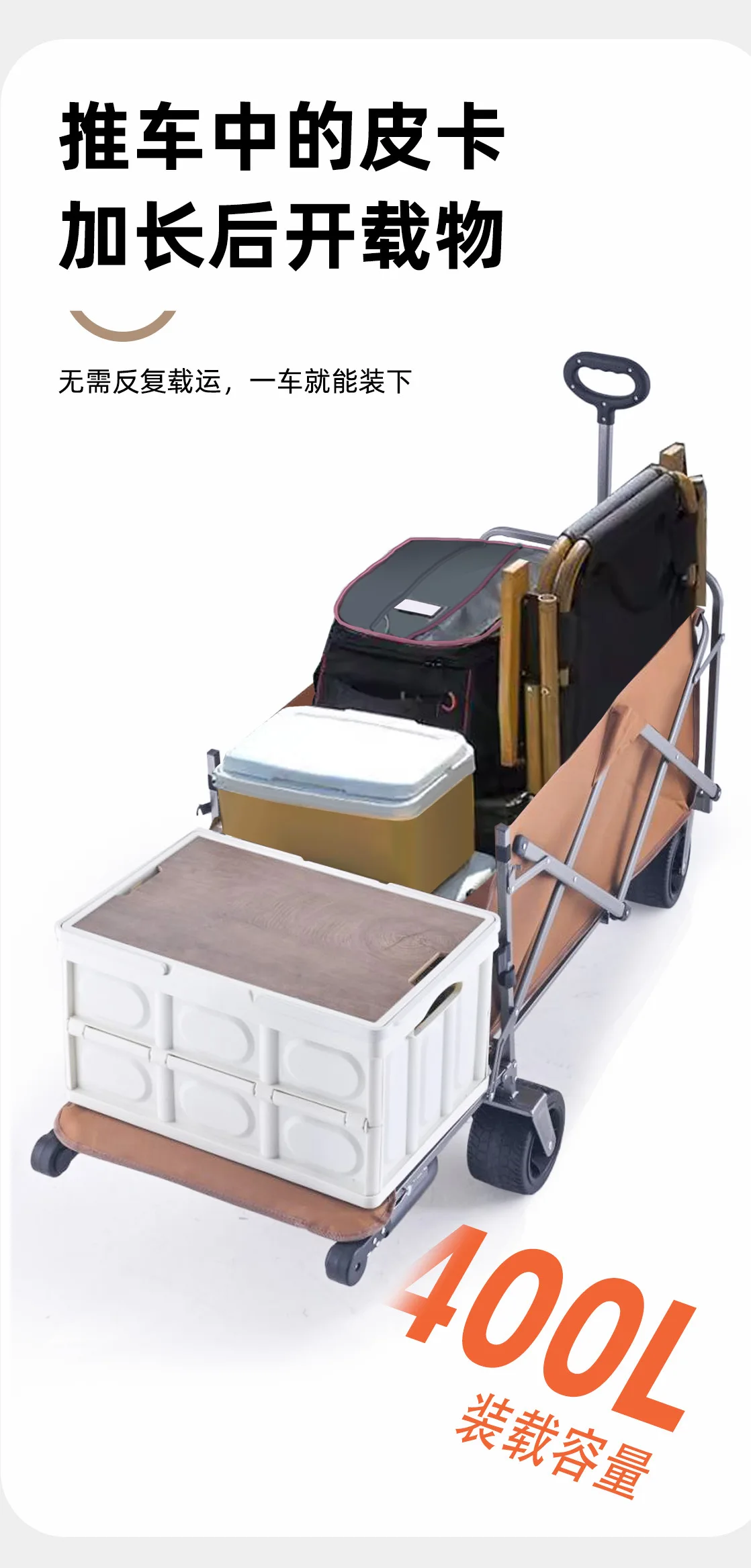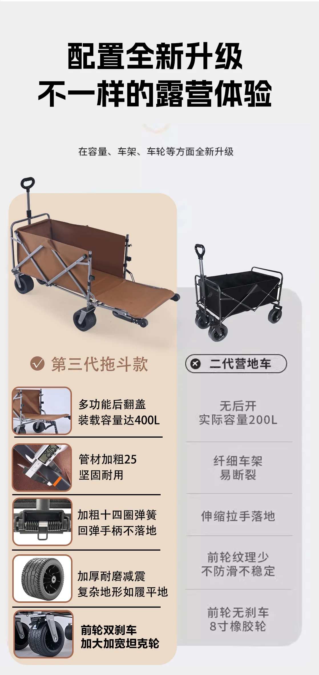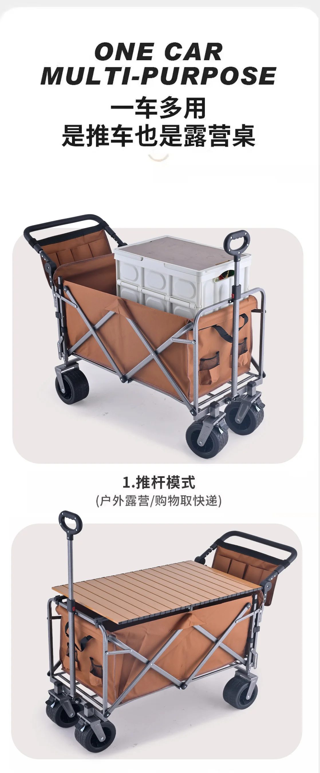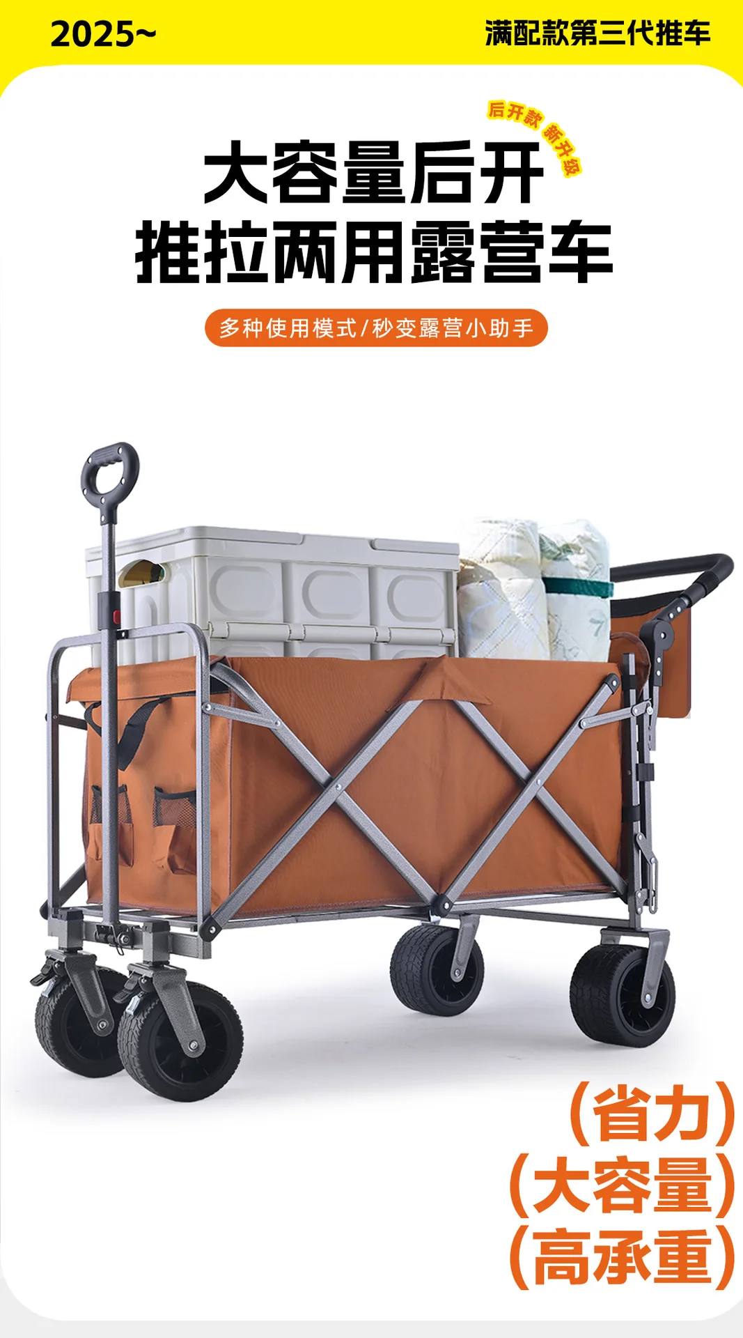 Rear-opening camping cart – sit-able, push-able, foldable, large-capacity outdoor picnic wagon, campsite trailer, compatible wit