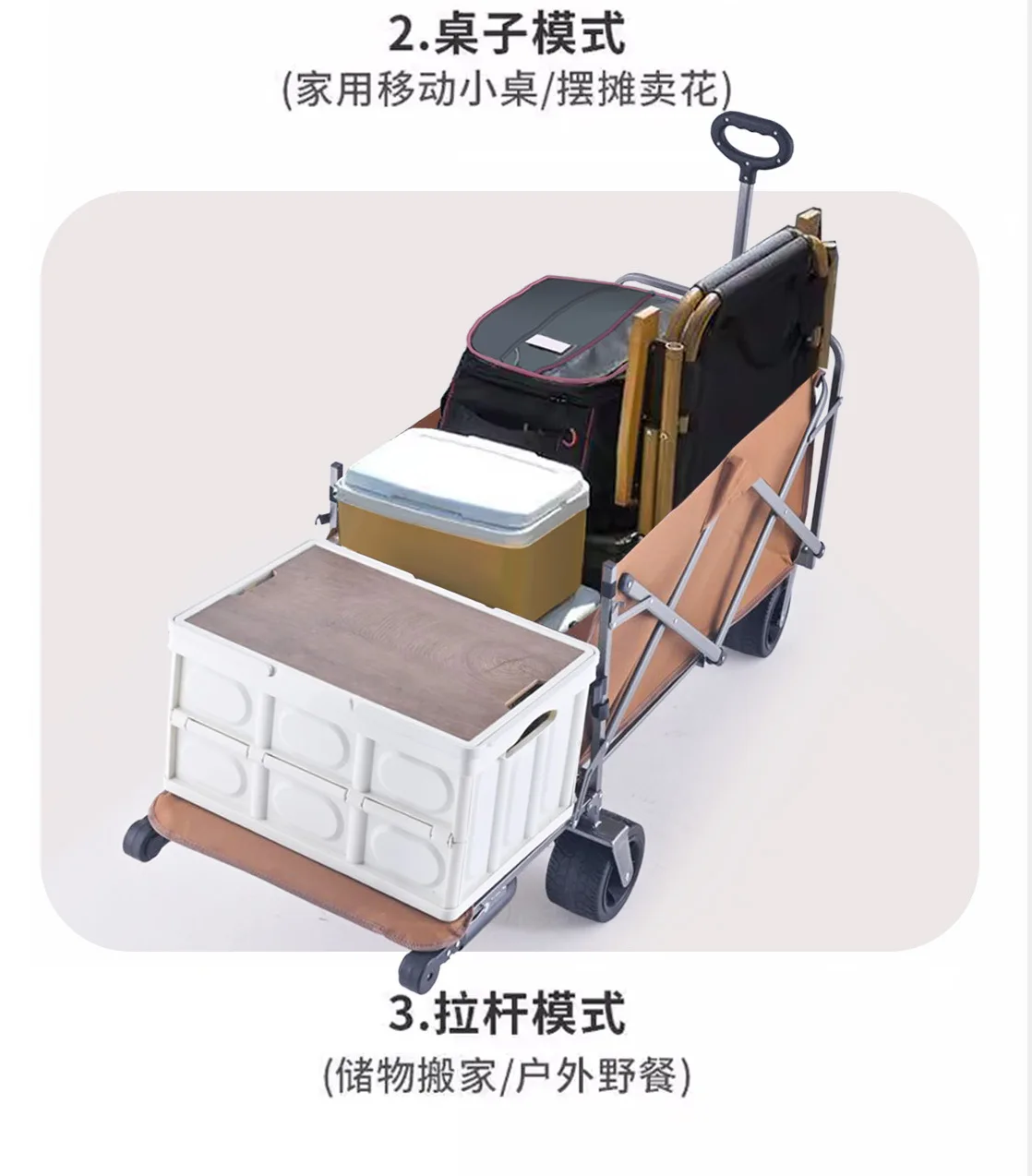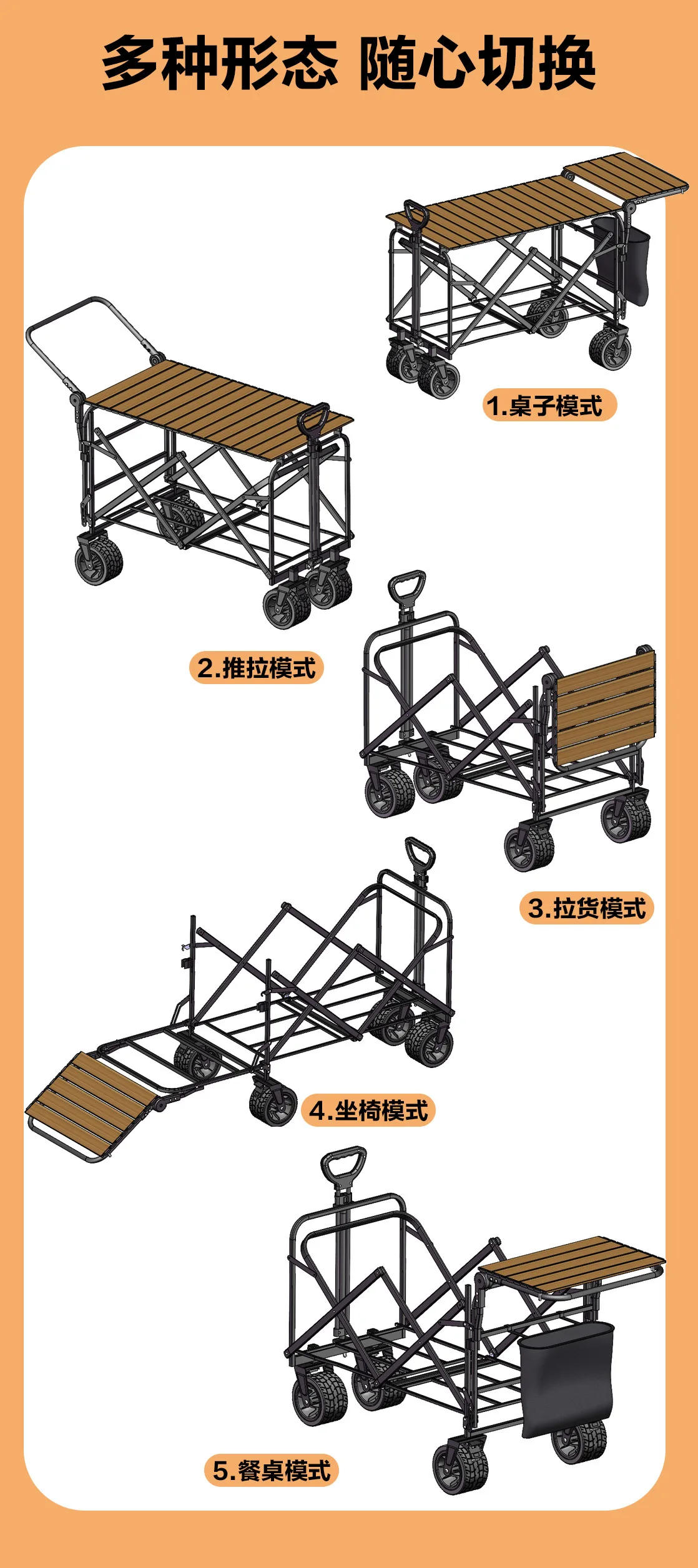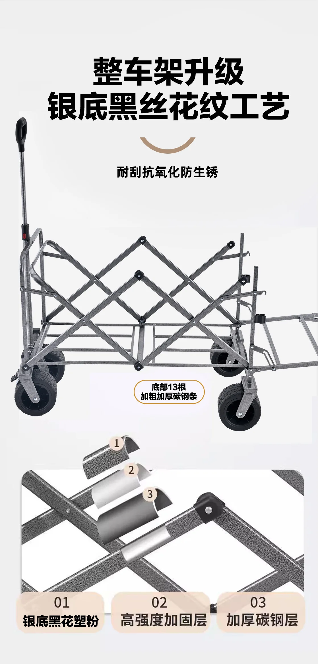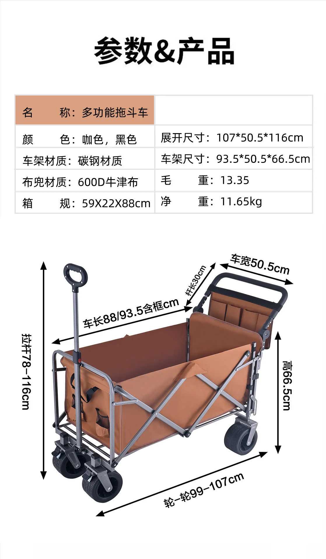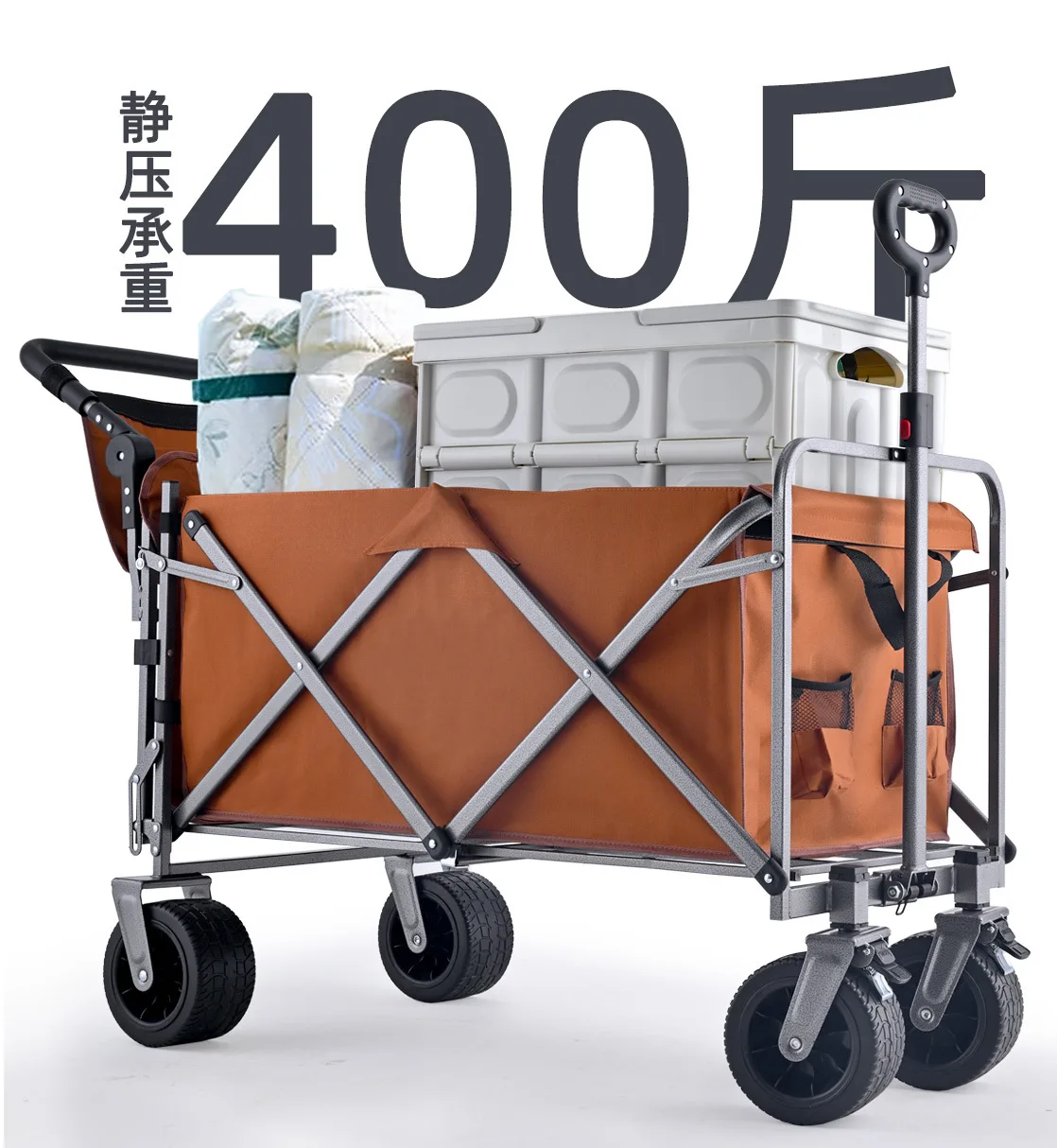 Rear-opening camping cart – sit-able, push-able, foldable, large-capacity outdoor picnic wagon, campsite trailer, compatible wit