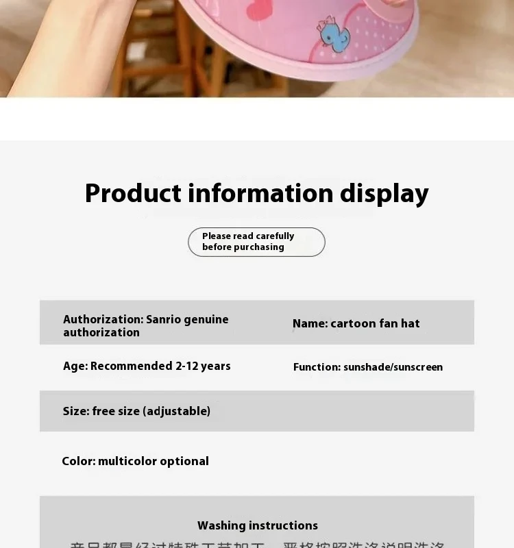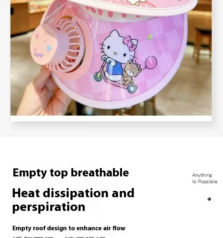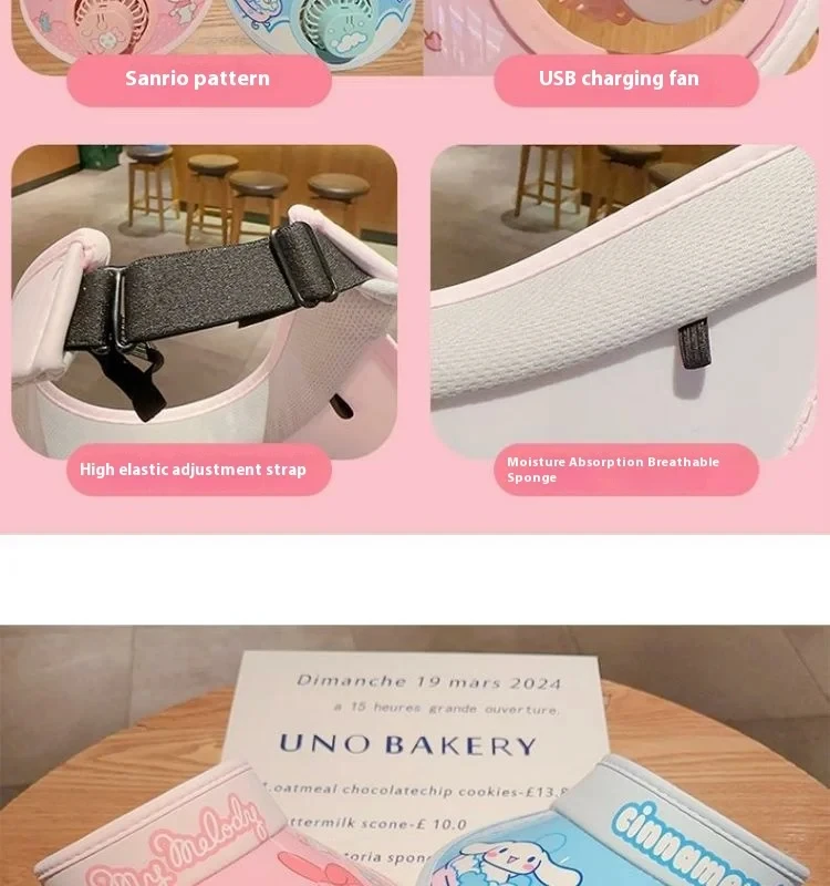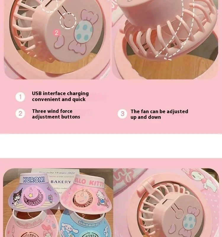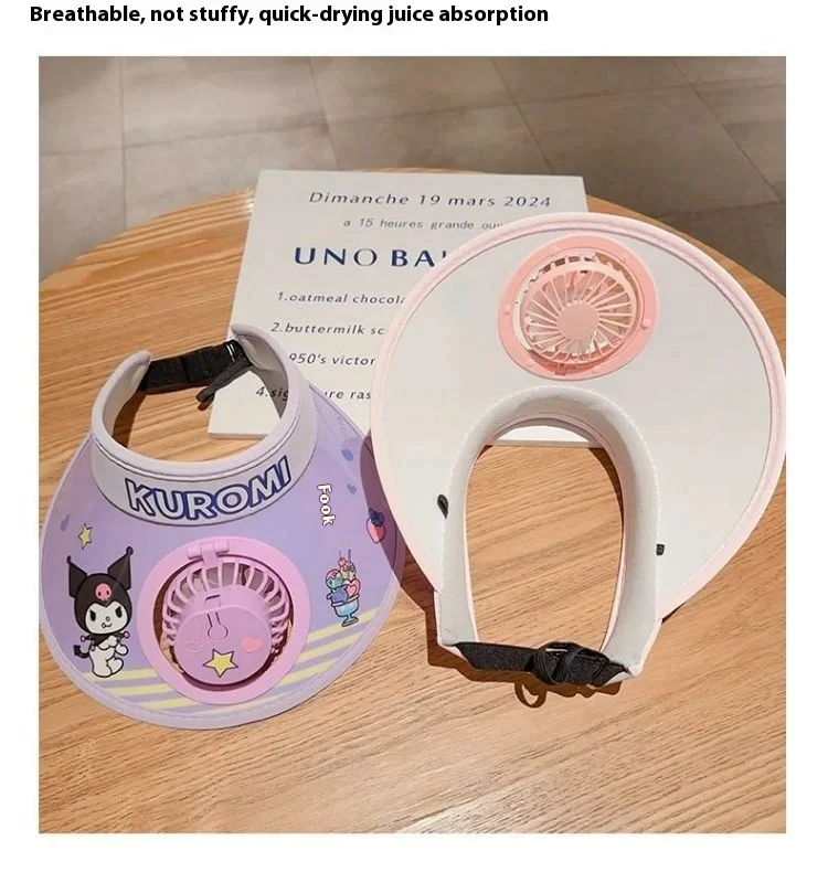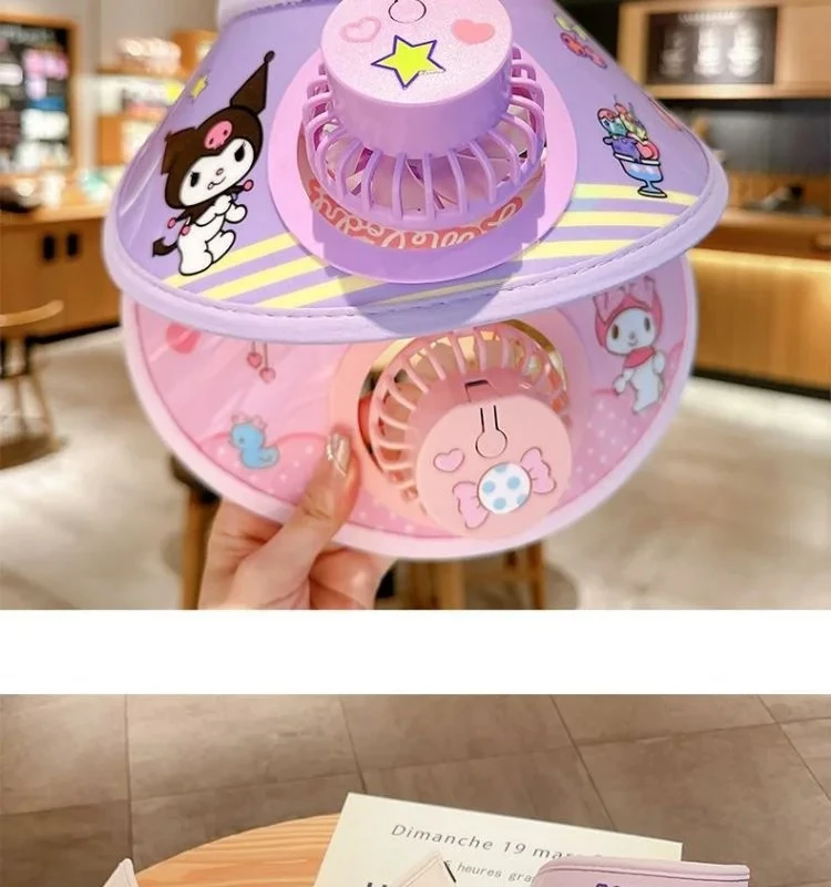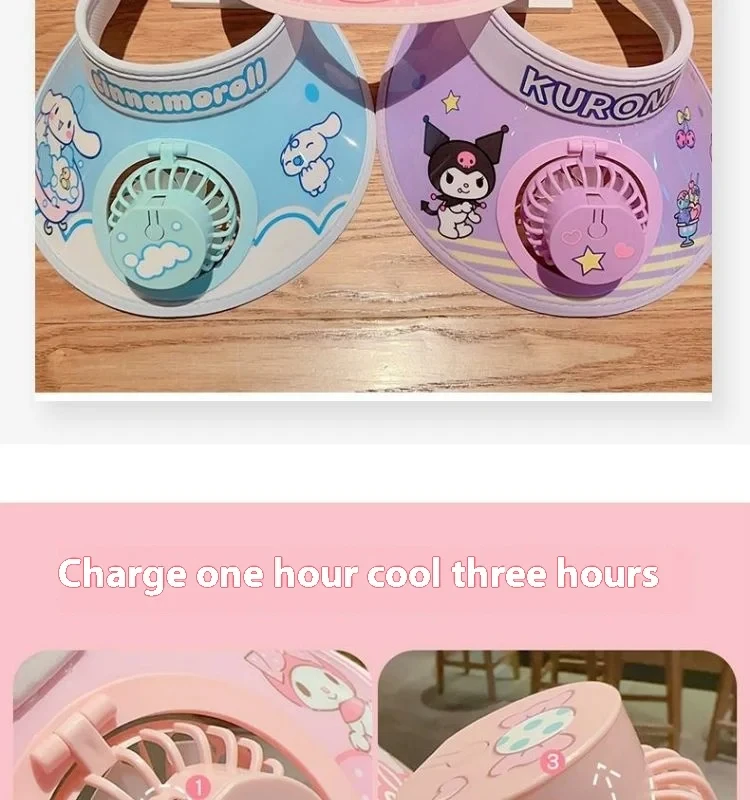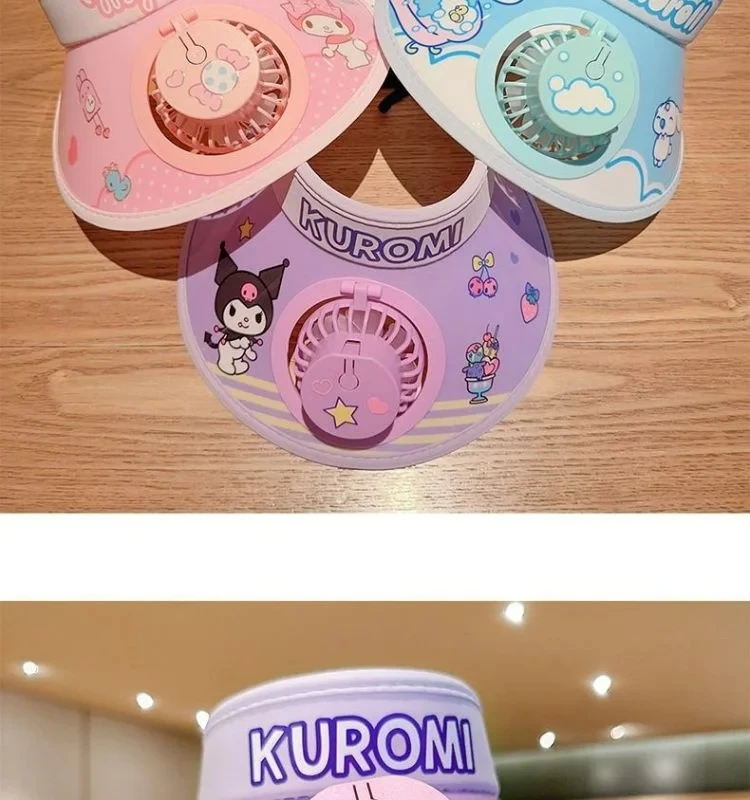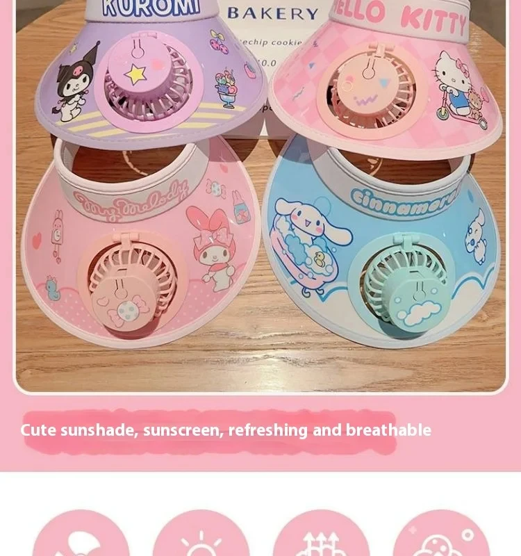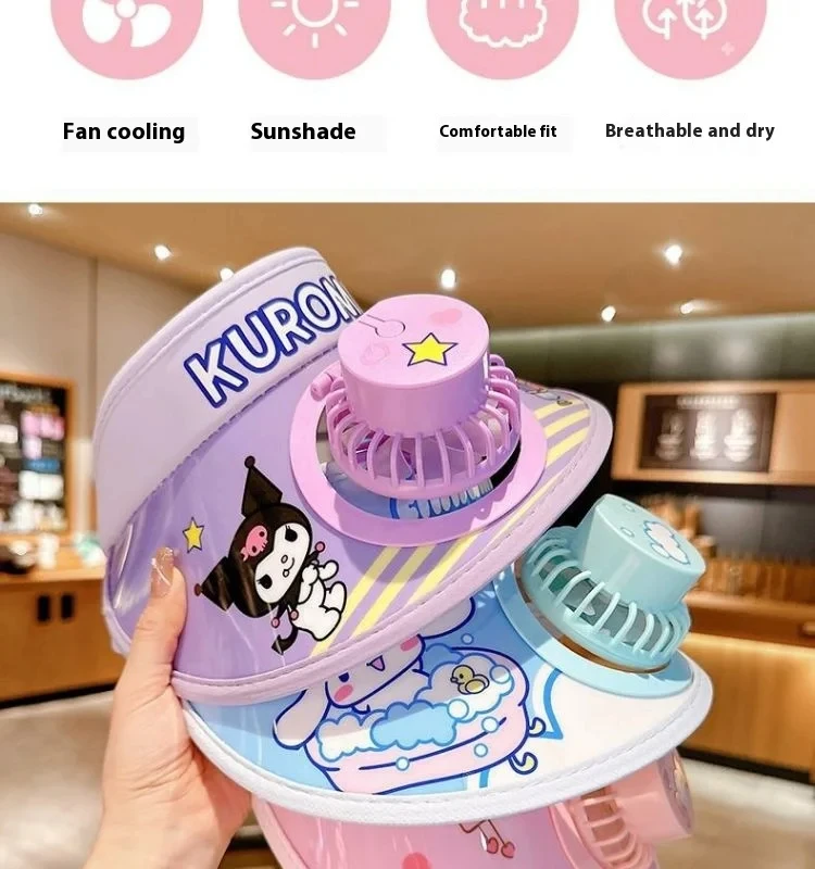 Sanrio Kids Cooling Hat With USB Fan Sun Protection Summer Outdoor Adjustable Sun Visor For Boys Girls Cute Cartoon Beach Cap