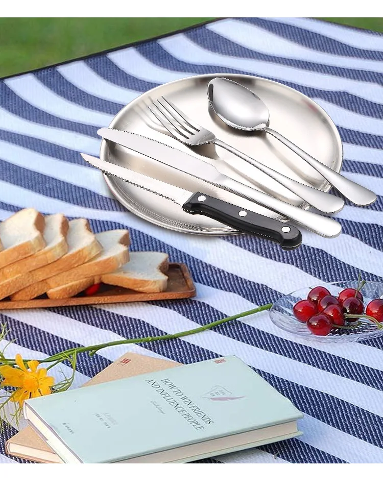 Stainless steel outdoor tableware set camping picnic knife fork spoon plate set outdoor portable meal