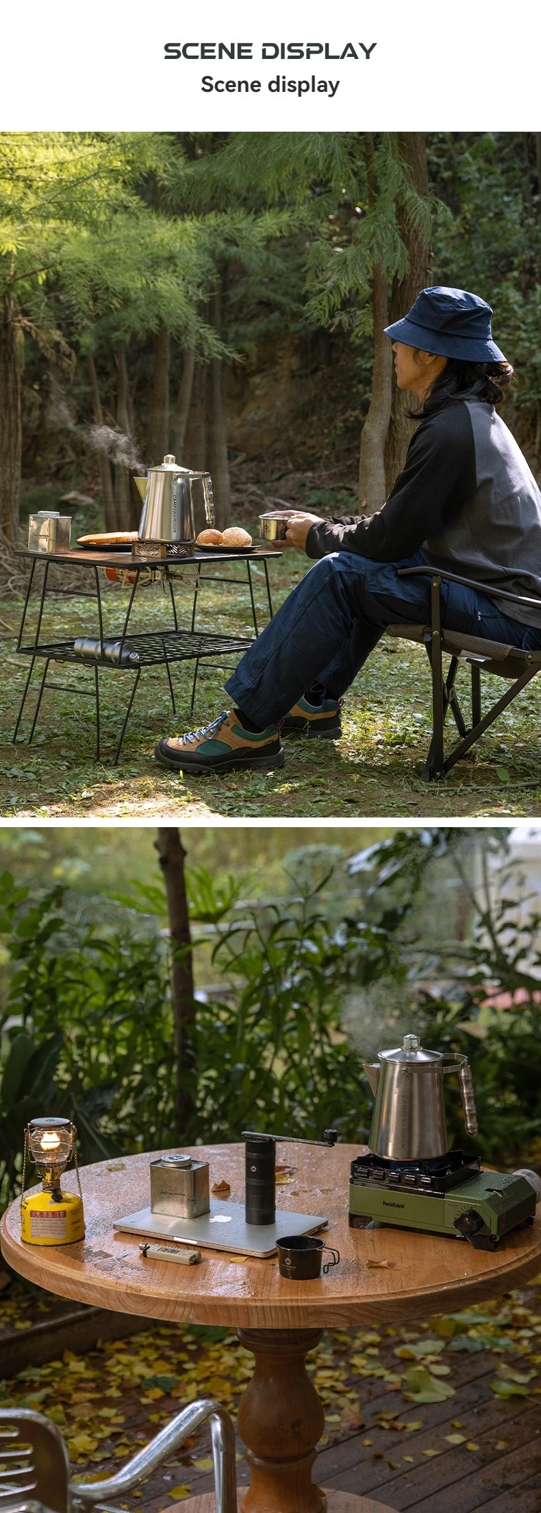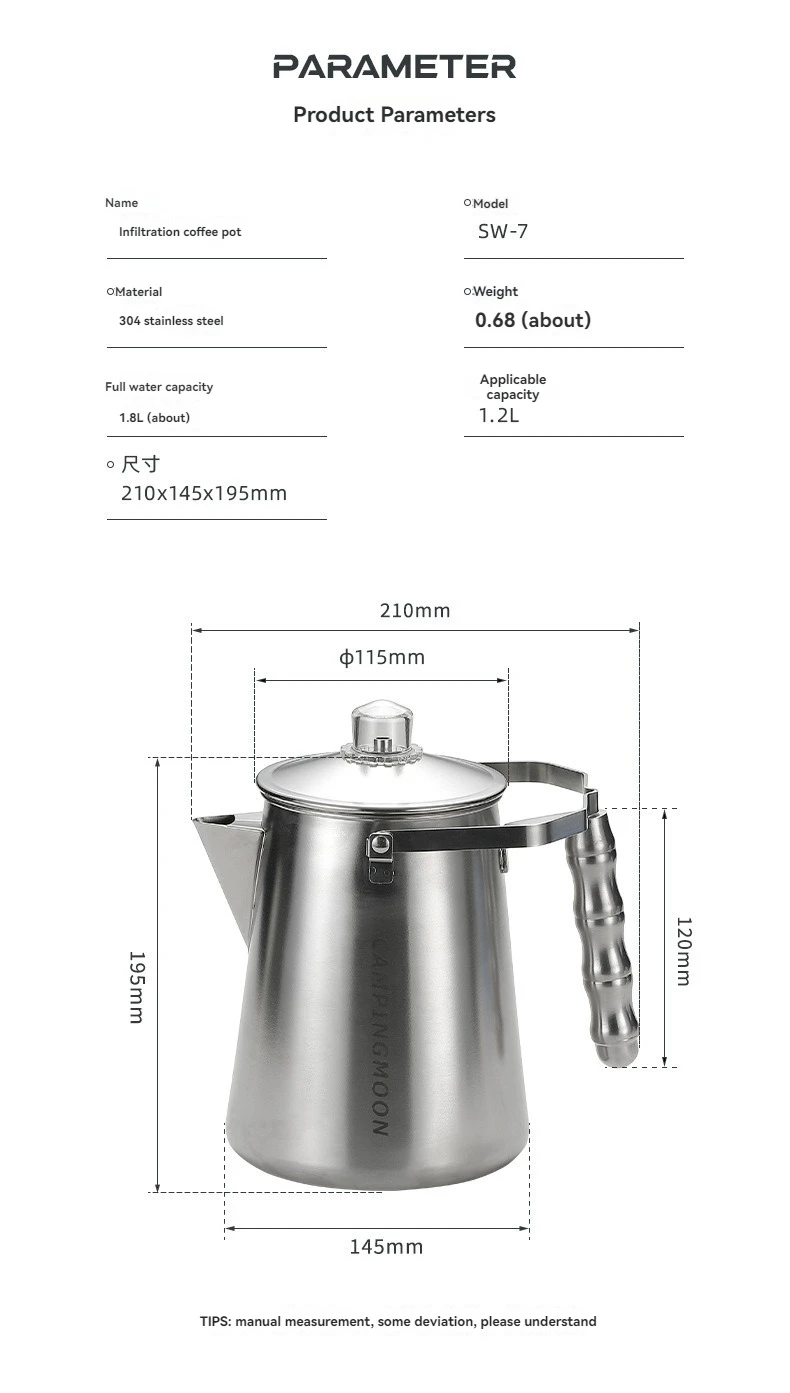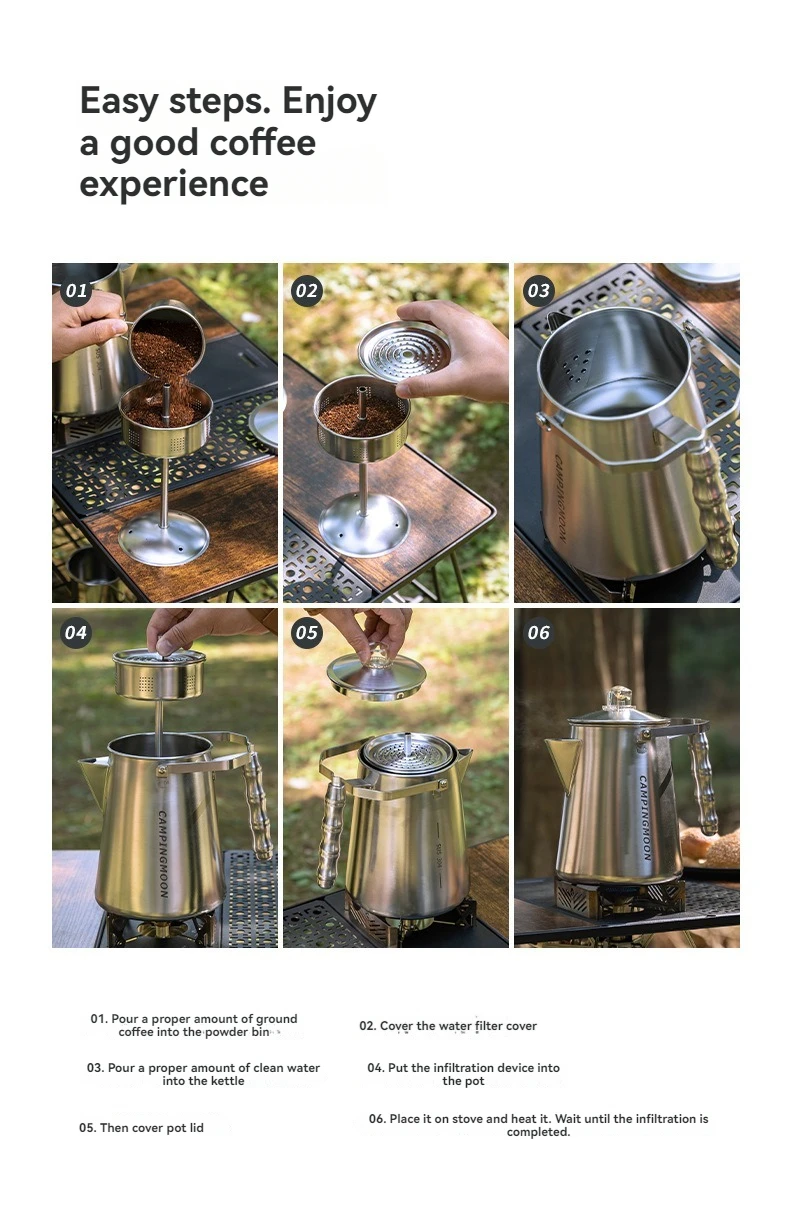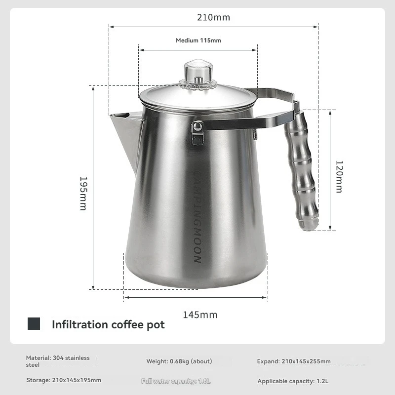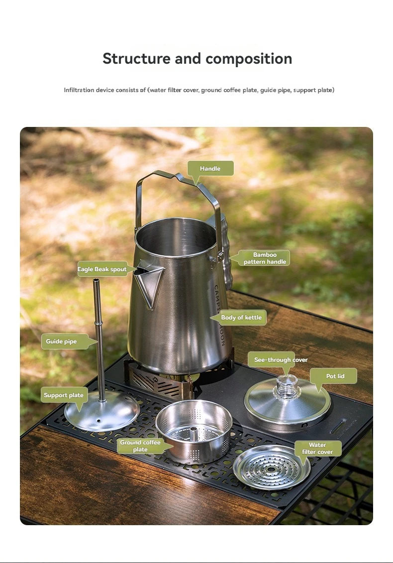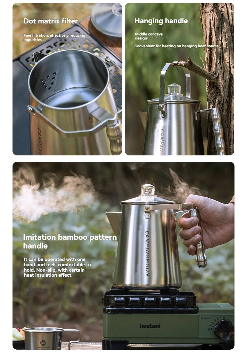 Campingmoon Camping Outdoor Accessories Cookware Kit Camping Kettle Stainless Steel Water Kettle Coffee Pot Lightweight