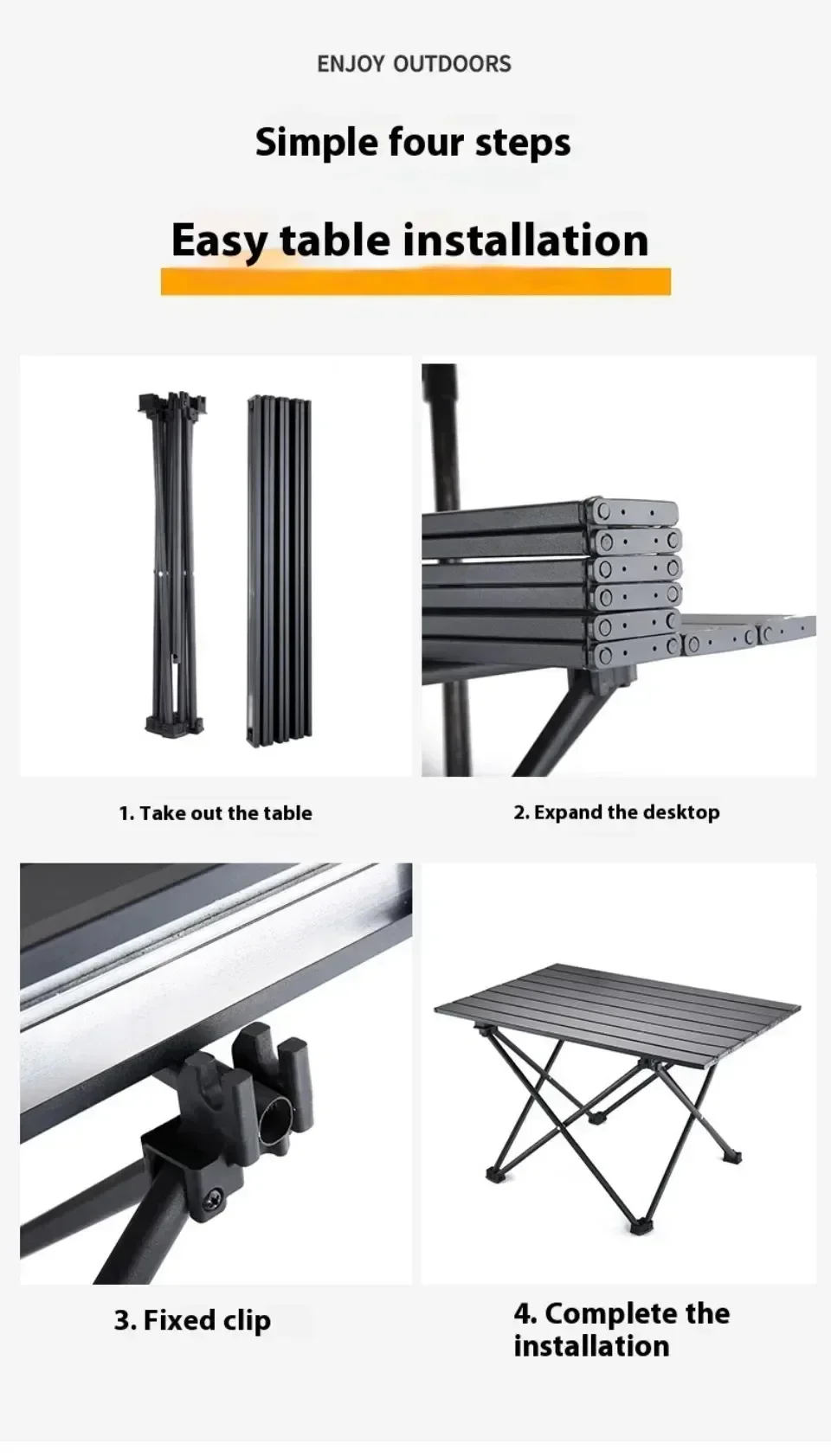 * Our table is made of lightweight and durable aluminum, which is easy to carry and transport, making it the best choice for backpacking, camping, and beach trips