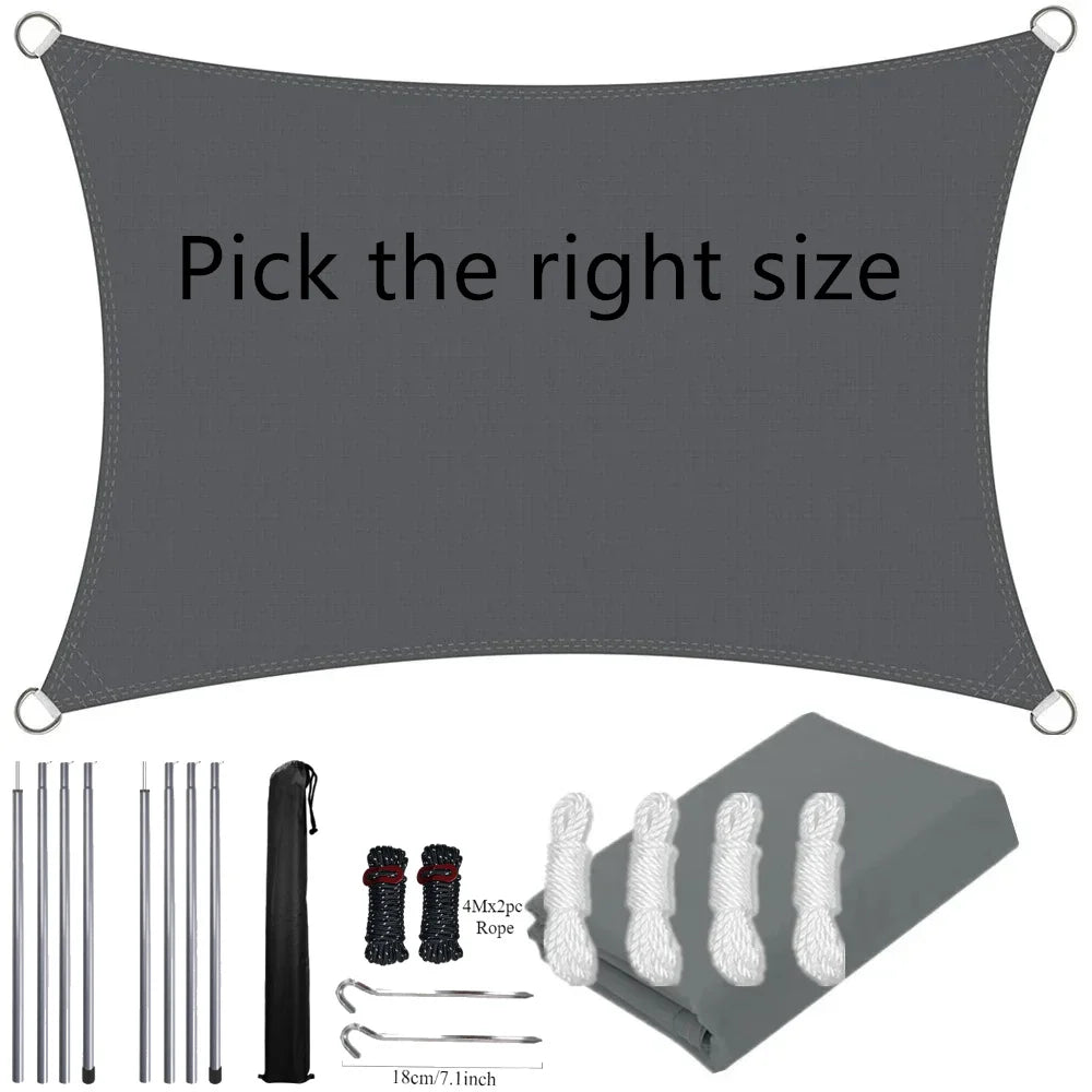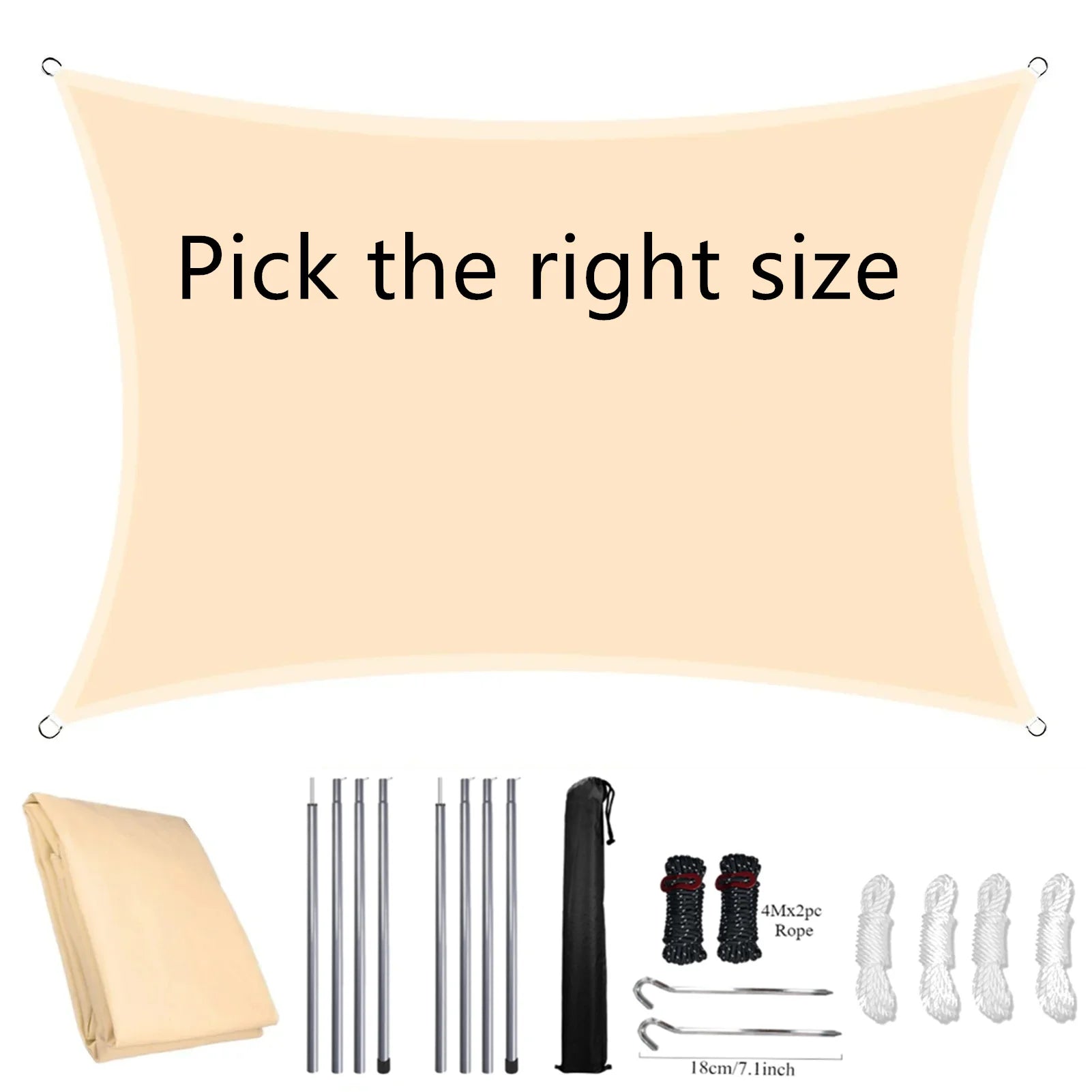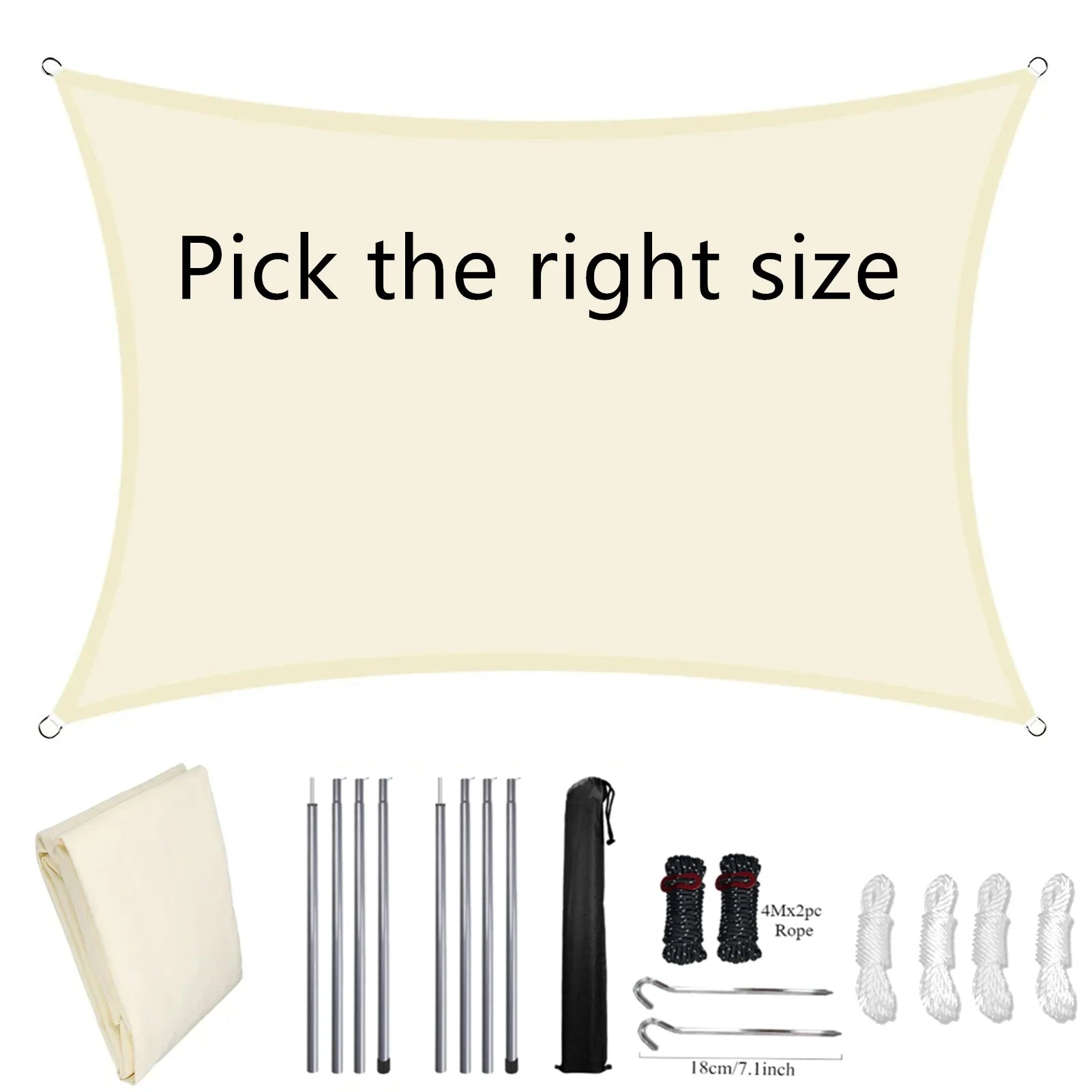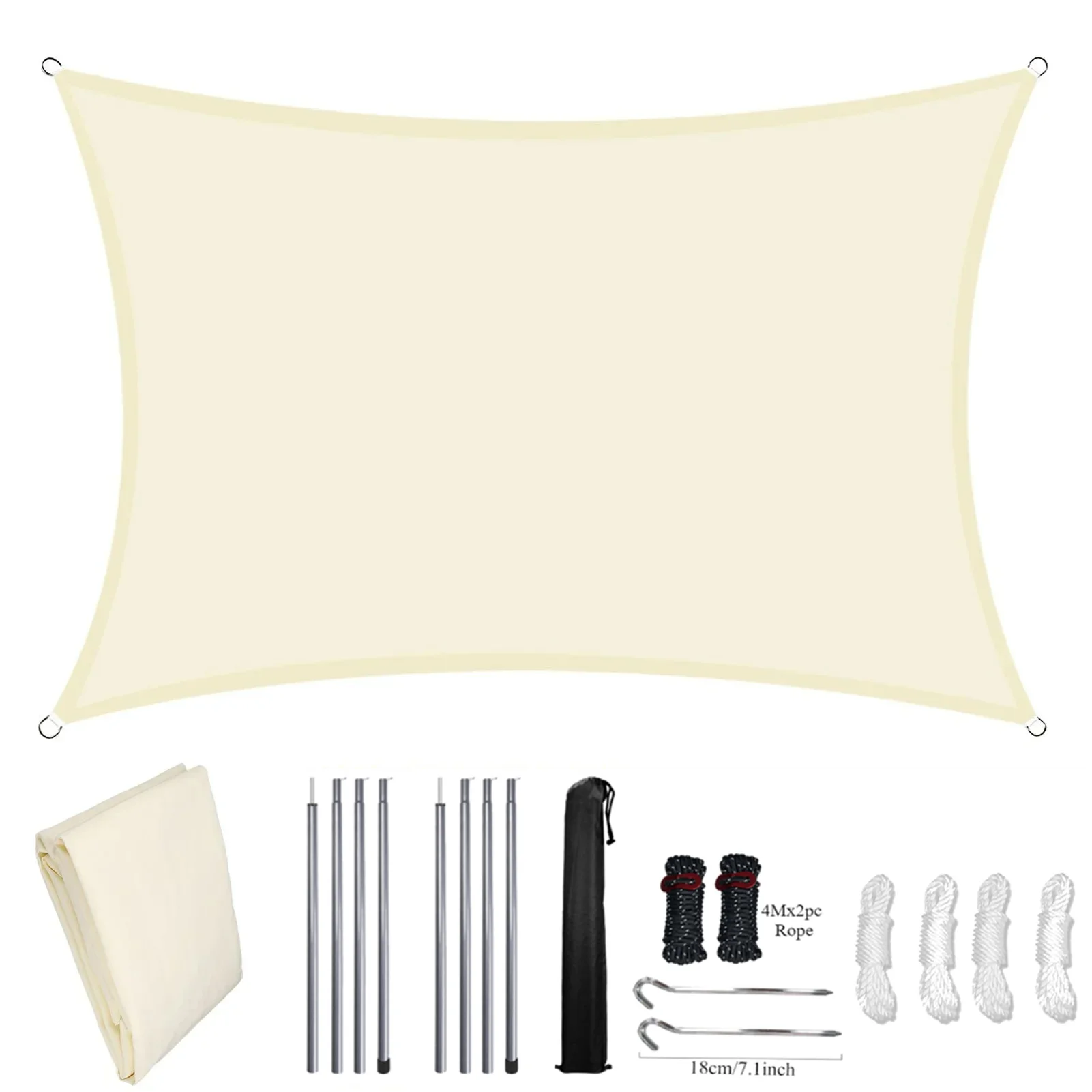 Shade Sail + 4pcs white sail ropes+2pc Tent Pole +2pc Windproof rope+2pc ground nail