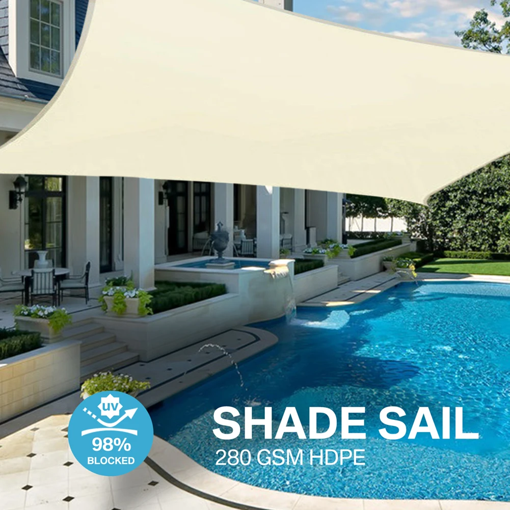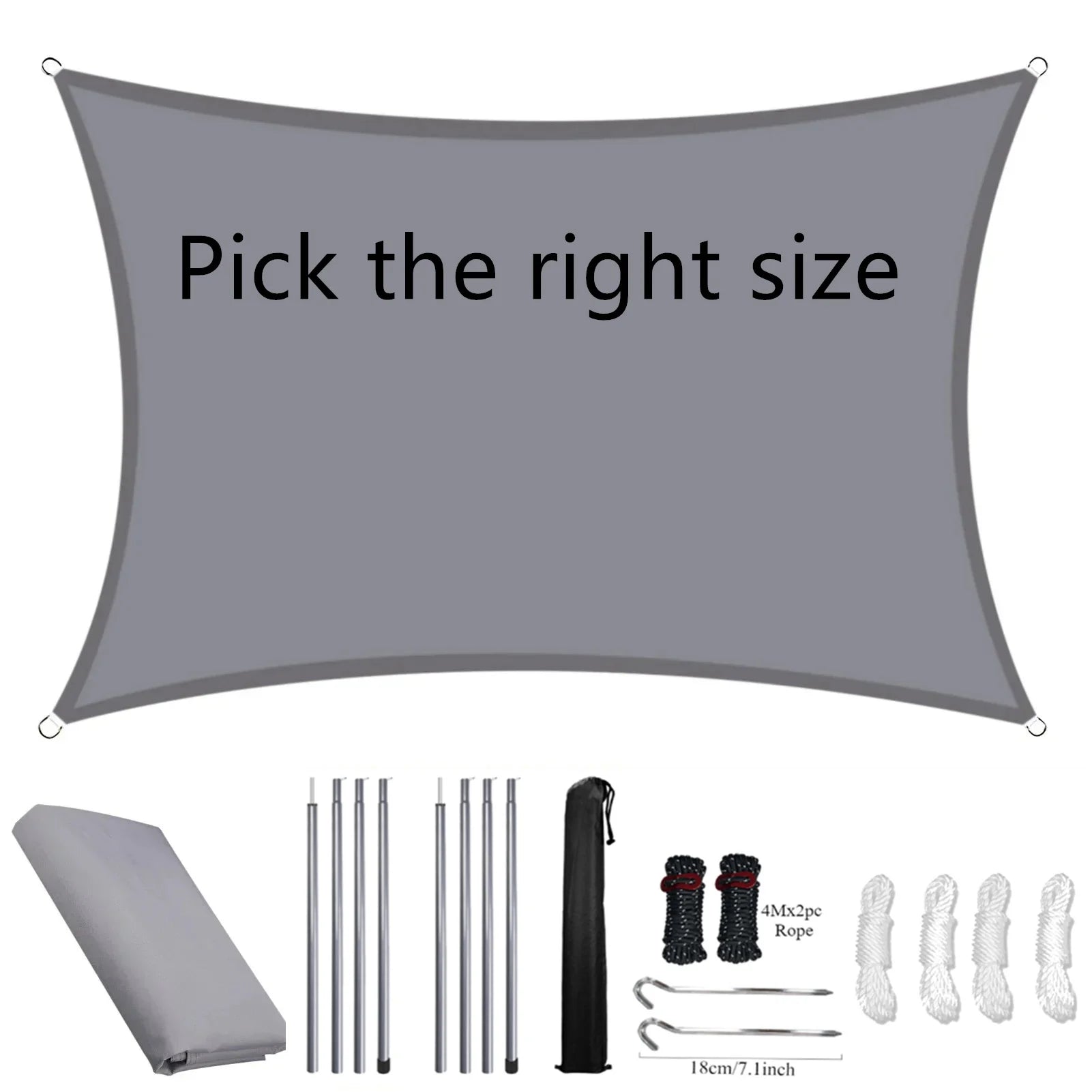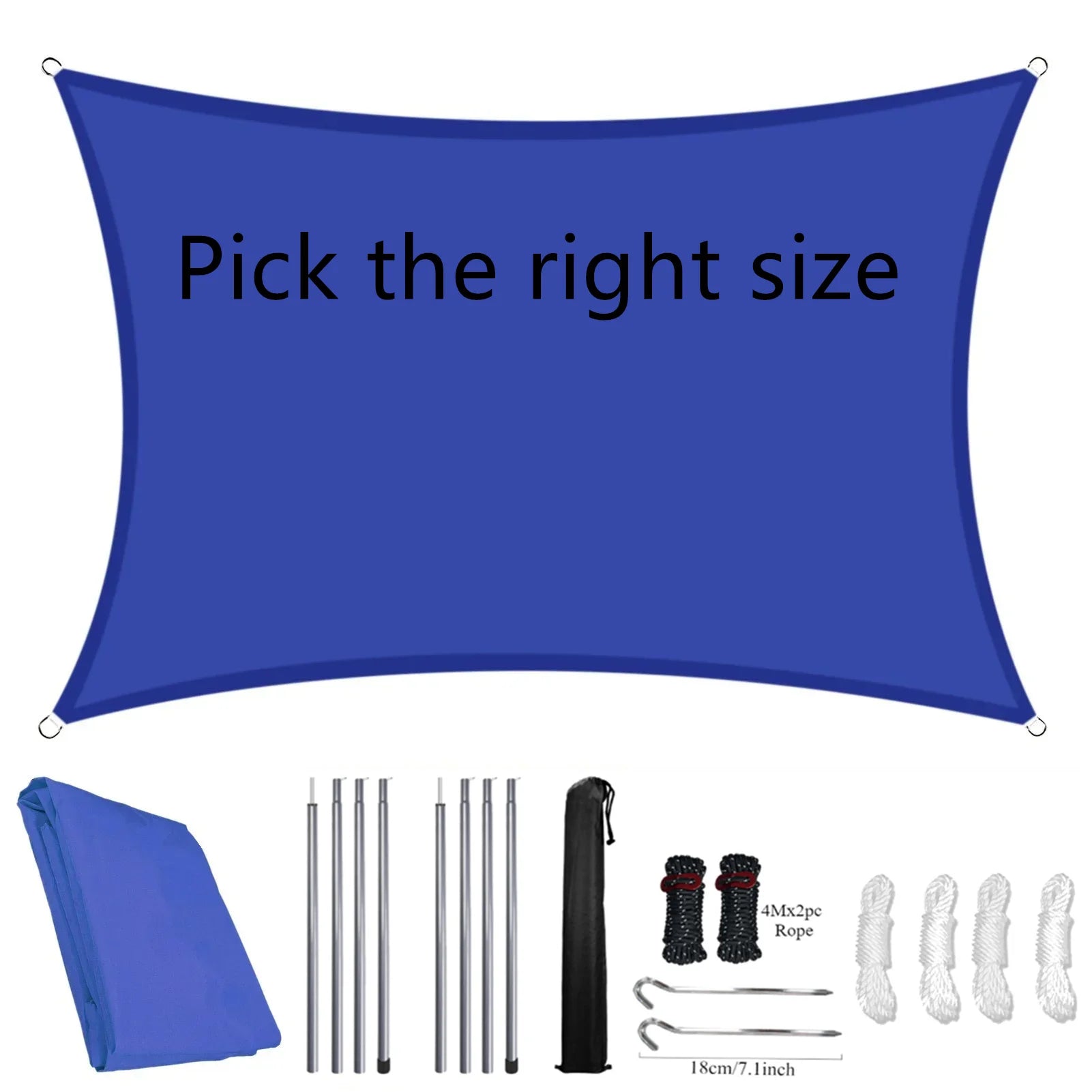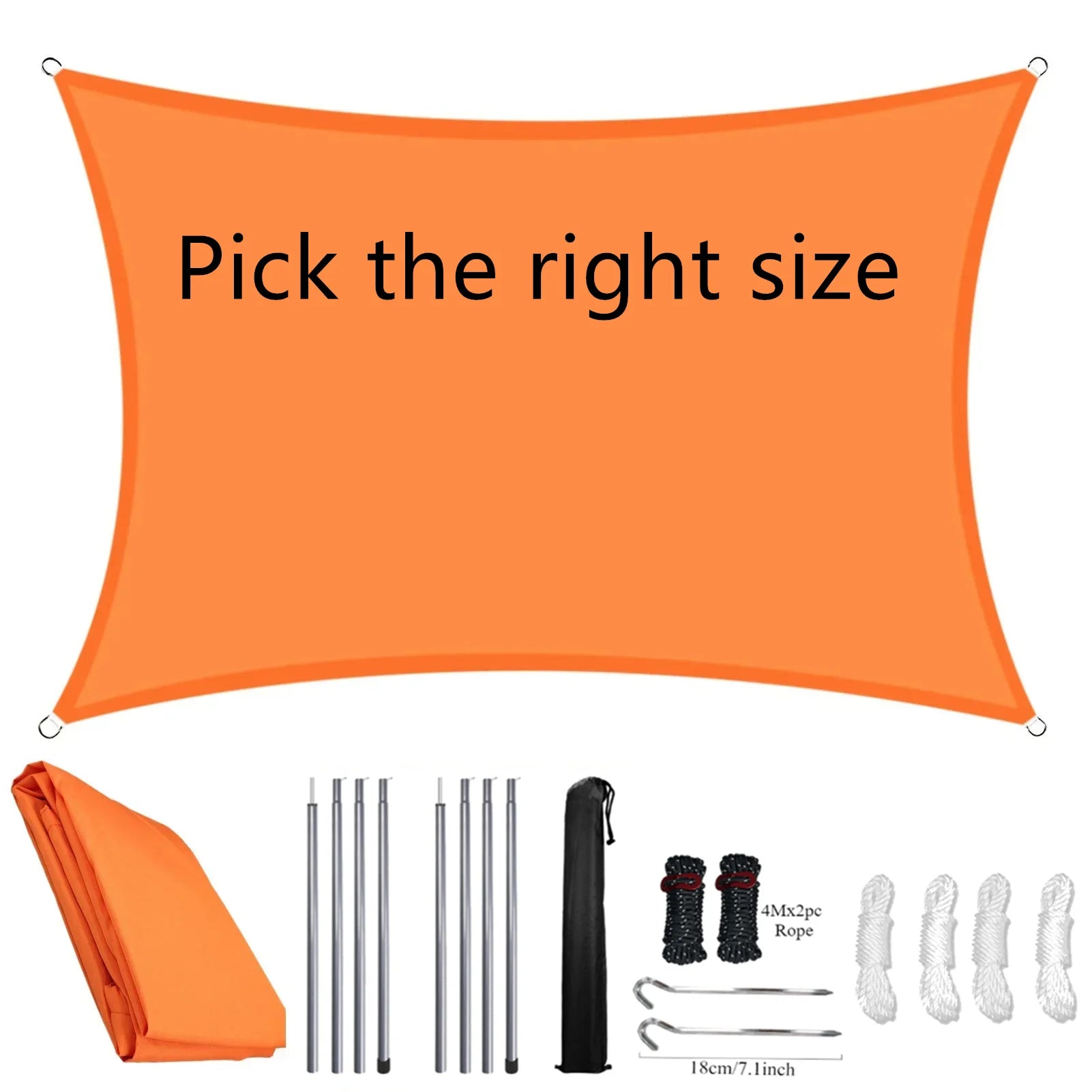 Shade Sail + 4pcs white sail ropes+2pc Tent Pole +2pc Windproof rope+2pc ground nail