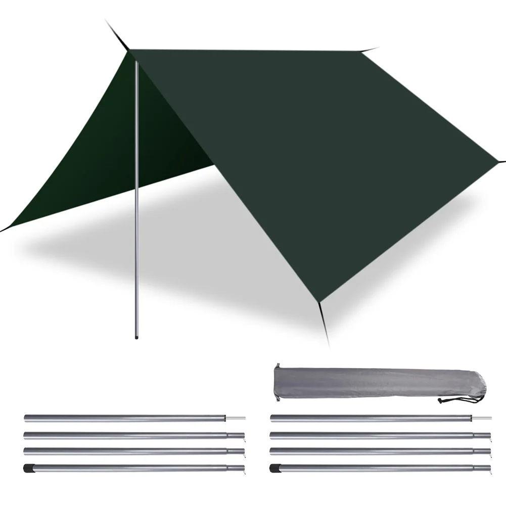 【Package Included】Our roof tent awning includes 2 section poles&carrying bag, 2 x ground nail, 1 x tarp, 4 x rope, 2 x Windproof rope. if there is any problem during the use, please feel free to contact us. Put a chair under the awning and take a break with your friends or family