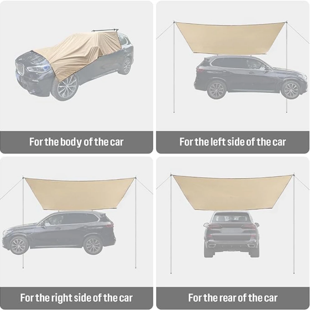 【Multifunctional Sunshade Sail】Installed on vehicle roof to build car side tents, body sun tents, and tail awnings. It's easy to attach to SUV, cars, trucks or almost any vehicle. Ideal for camping, picnics, car trips and other outdoor activities.