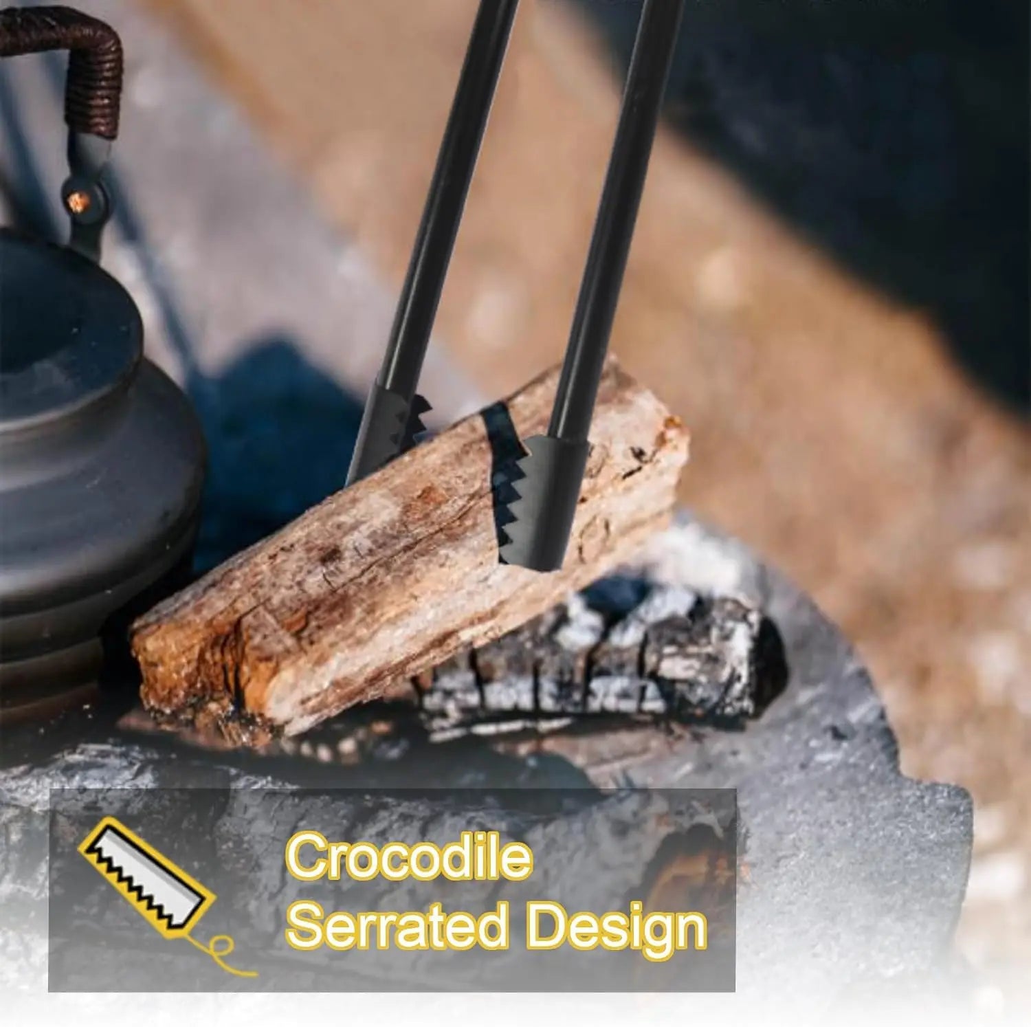 γππ₯ππ’π‘π’π ππ πππ¦πππ‘γ: Wooden handles, 6 inches long, heat-tolerant, with a linear design that makes it easy to pick up logs. Effectively increases grip and comfort, ensuring safe fire maintenance
