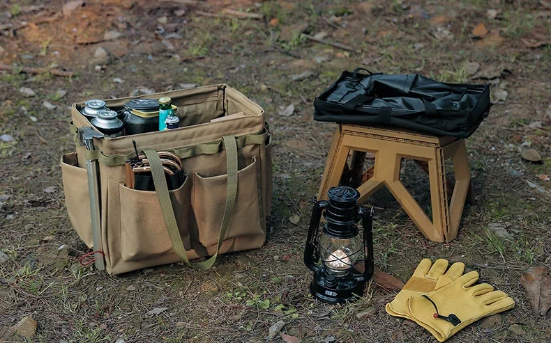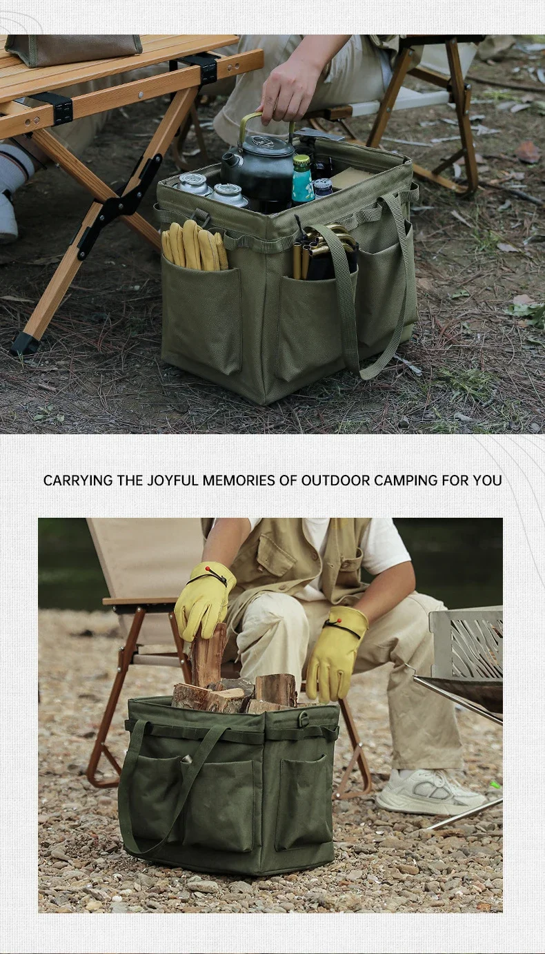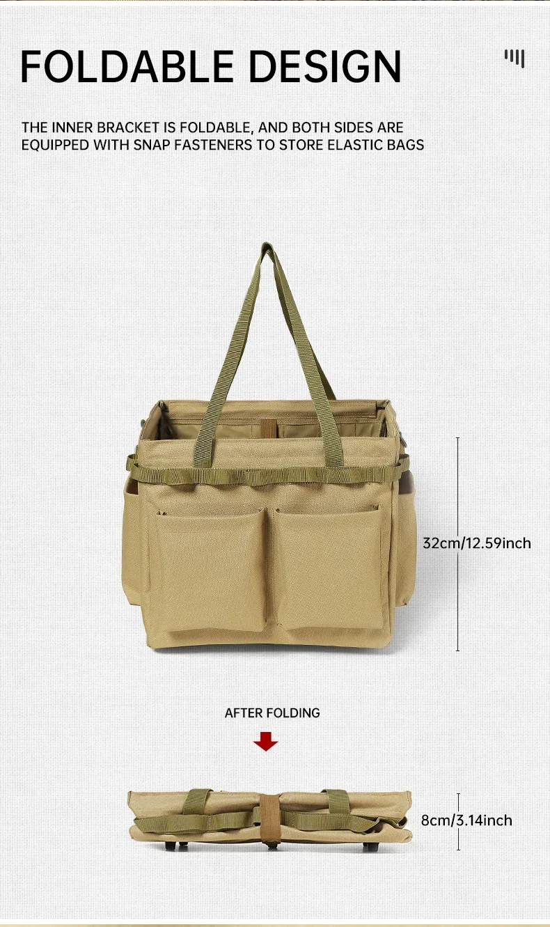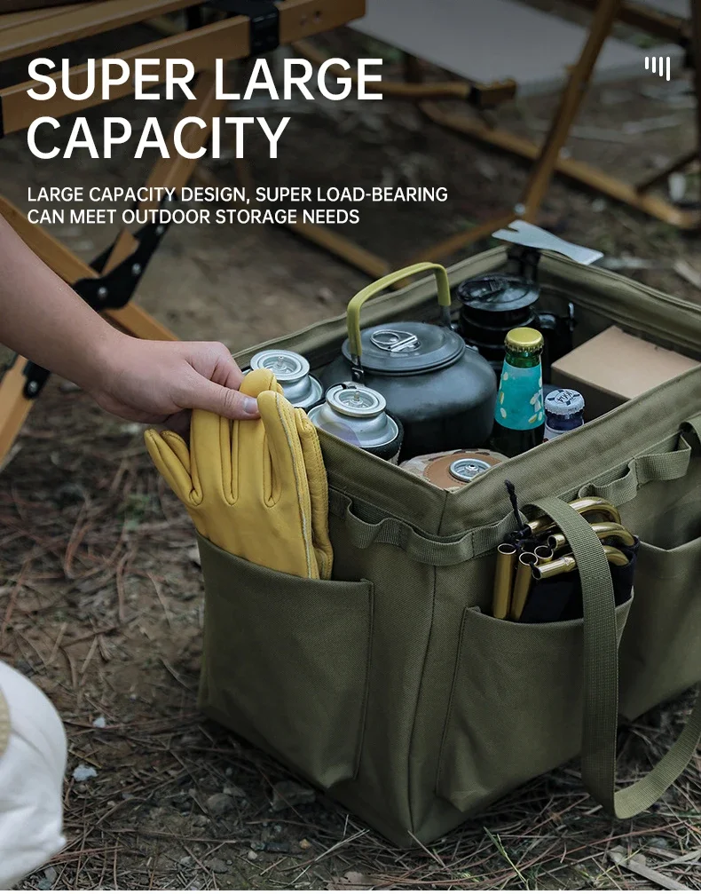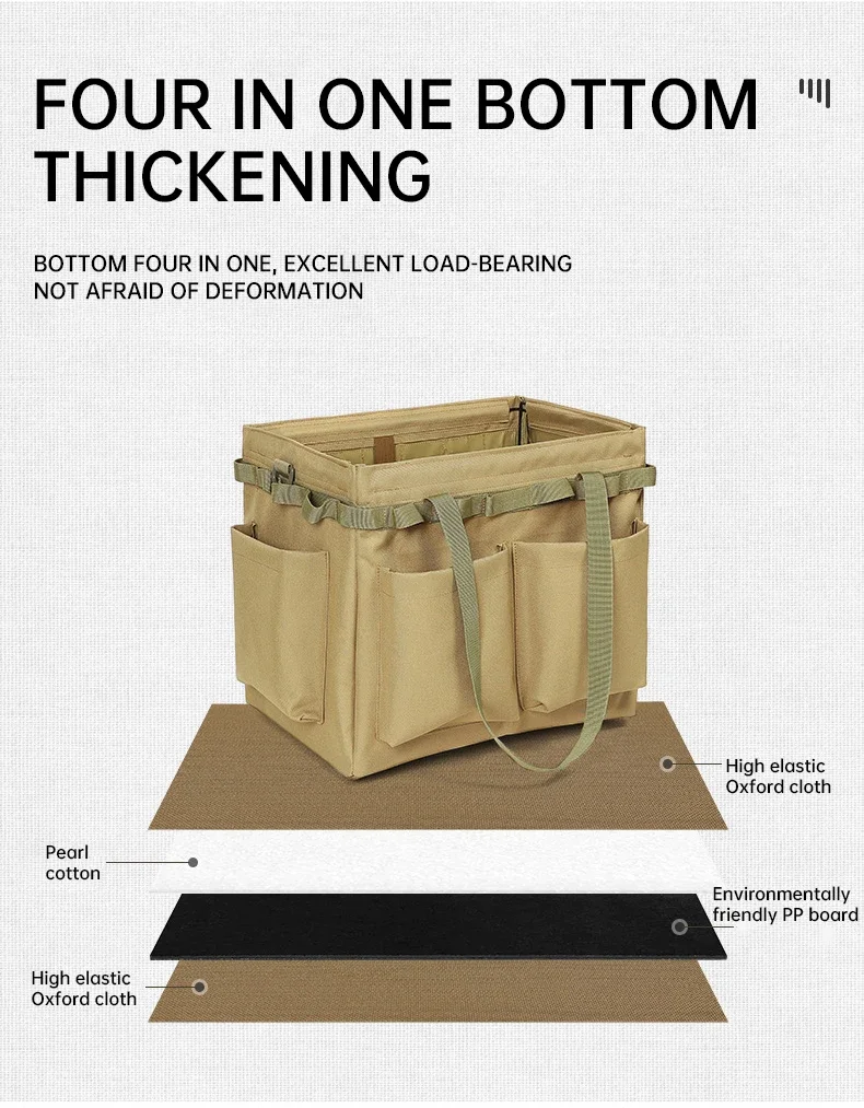 LargeCamping Storage Bag, Elastic Compression Oxford Storage W/ Waterproof Bottom, Multi-Pocket Outdoor Tool Organizer