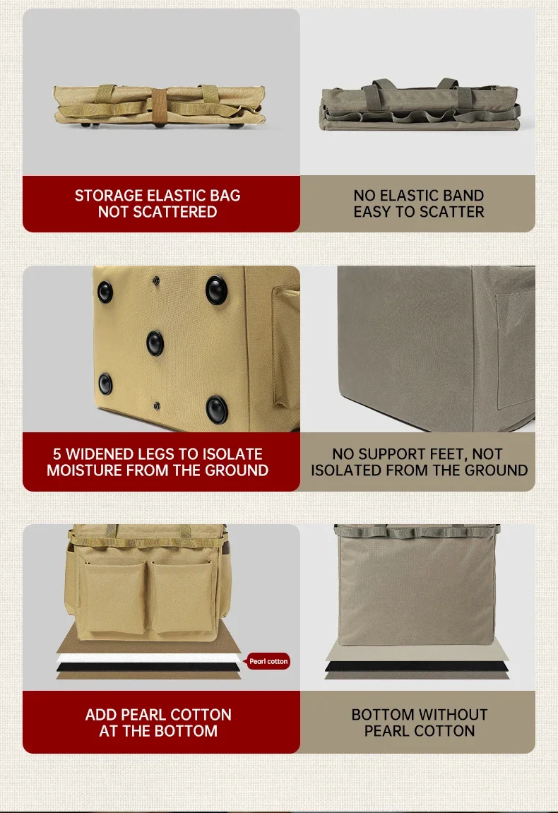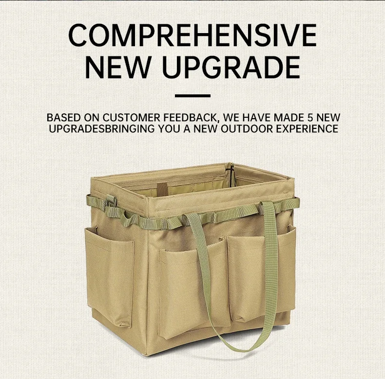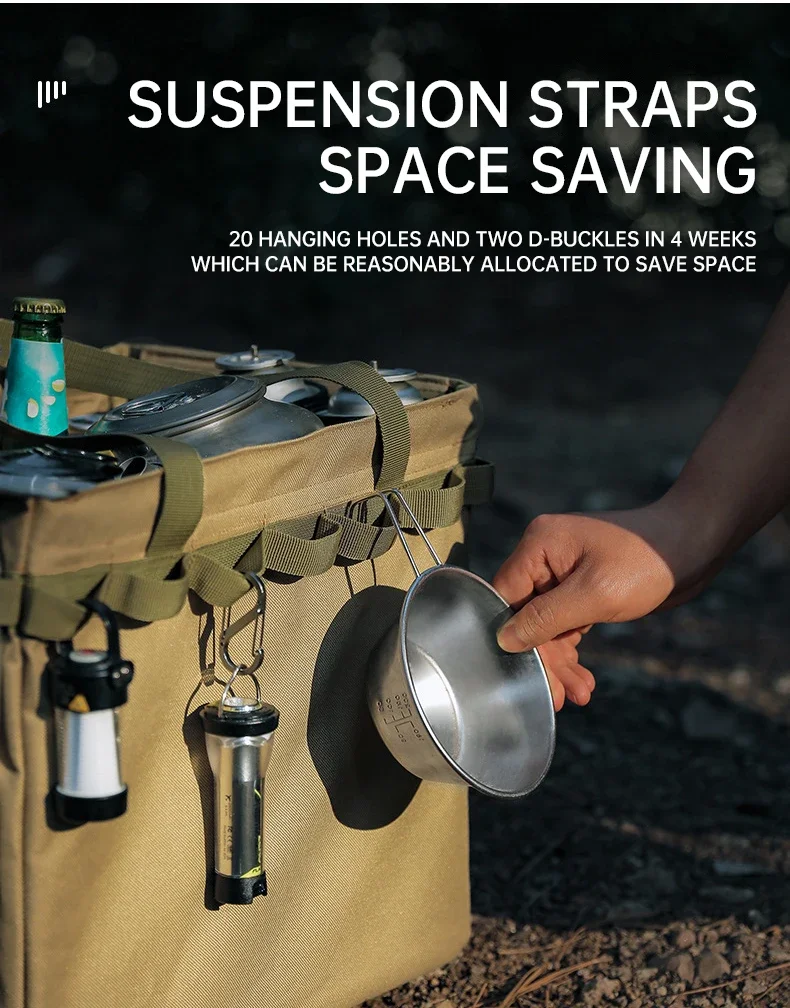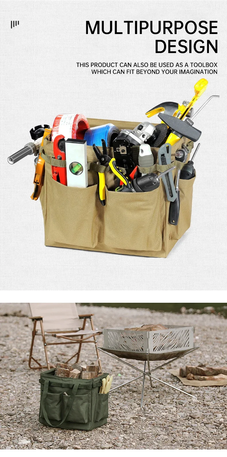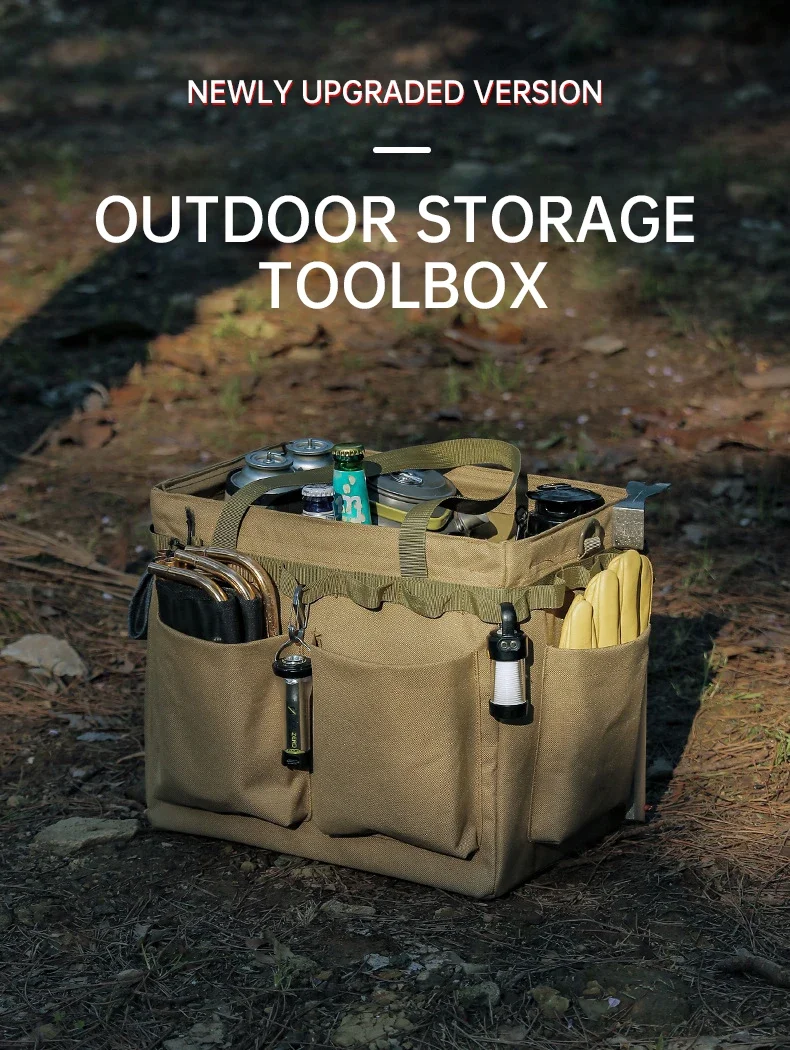 LargeCamping Storage Bag, Elastic Compression Oxford Storage W/ Waterproof Bottom, Multi-Pocket Outdoor Tool Organizer