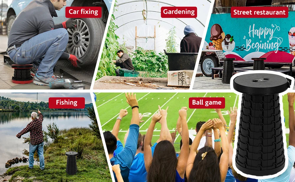 - Wide application : The extendable stool is perfect for indoors and outdoors.Indoor occasions such as the living room, bedroom, bathroom, mountain,kitchen,beach,pool, office; Outdoor activities like camping, fishing,hunting, hiking, BBQ, picnic, queuing, gardening,etc.