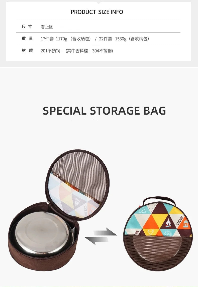 Camp Cooking Portable Dining Plate Set of 17/22 Outdoor Camping Tableware Self driving BBQ Plate Home Soup Pot Bowl Plate Set