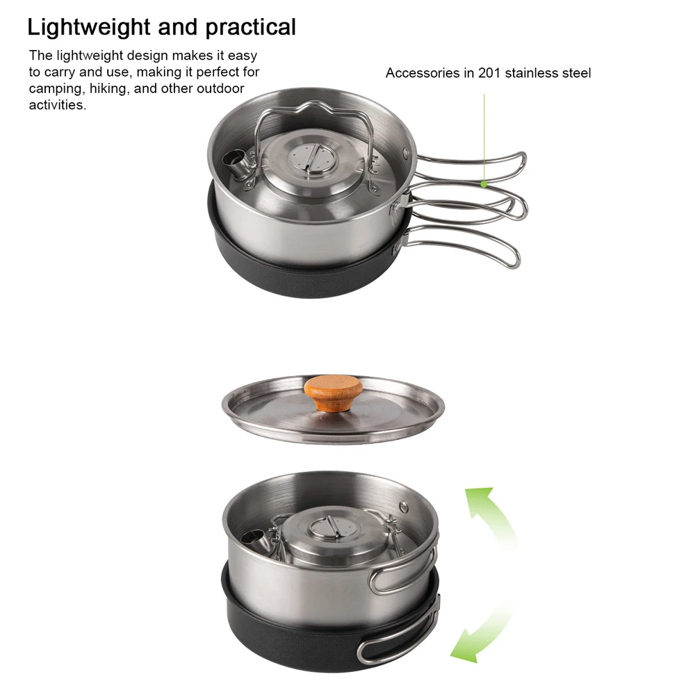 Versatile cooking: This outdoor cookware set includes pot, frying pan, and kettle, making it perfect for all your cooking needs, from frying to stewing and boiling.