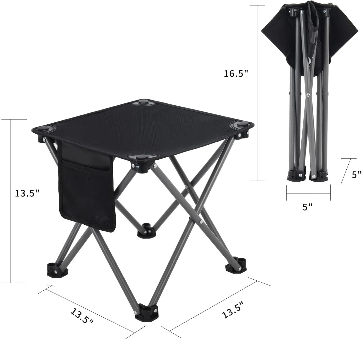 Small in size and space-saving: The unfolded dimensions of the portable camping stool are 13.5 inches long x 13.5 inches wide x 13.5
