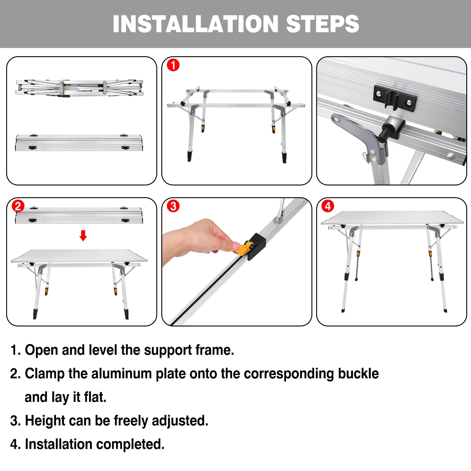 🏖️【COMPACT & LIGHTWEIGHT】With a roll-up aluminum table top, foldable frame, and included carry bag, this outdoor folding table is incredibly compact. Constructed with all aluminum alloy, this camping table weighs only 10 Lbs (4.5 kg), ensuring easy transportation. Enjoy the convenience and versatility of this adjustable camping table on your next outdoor excursion.