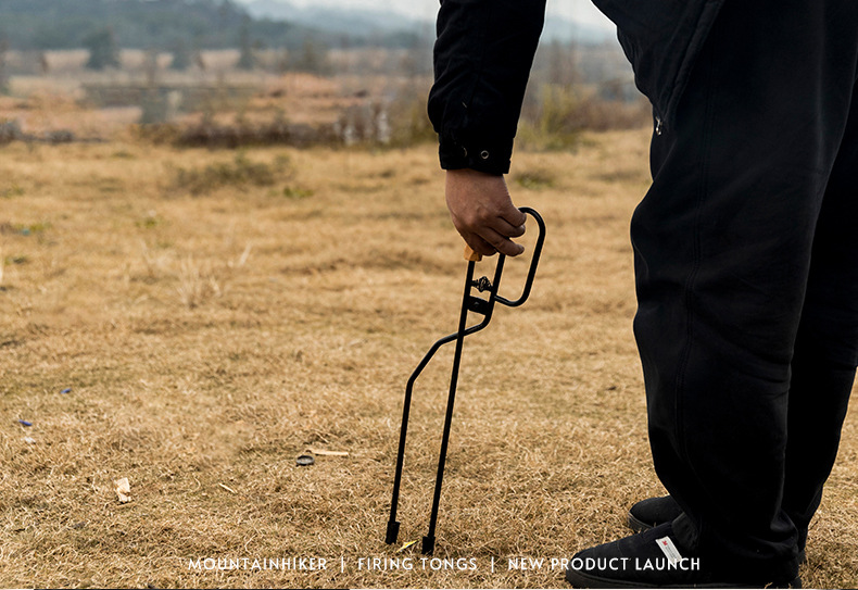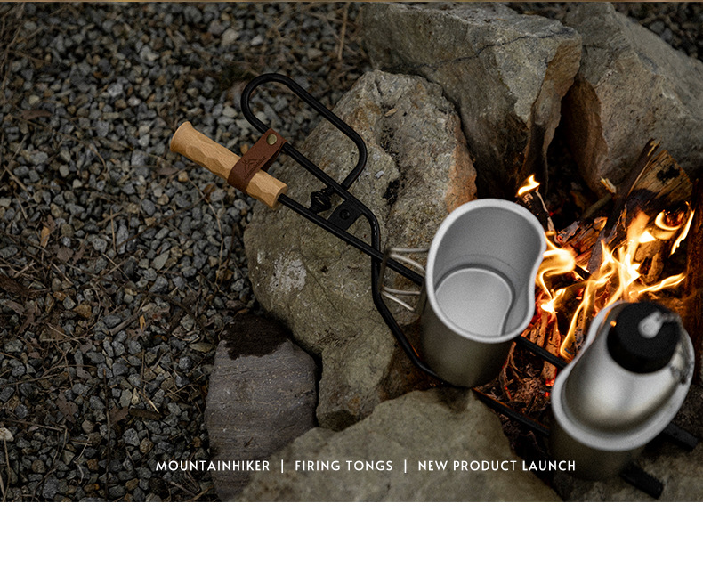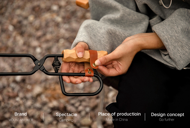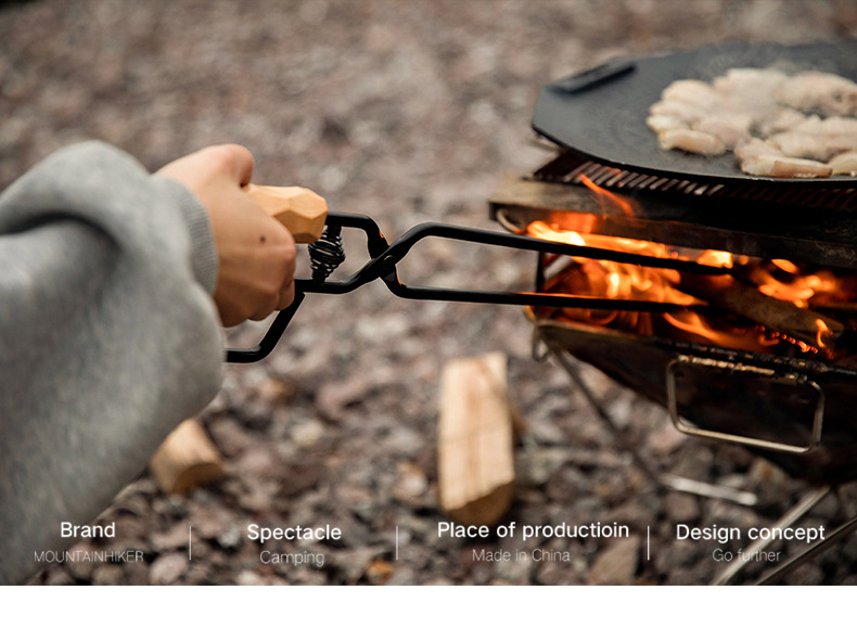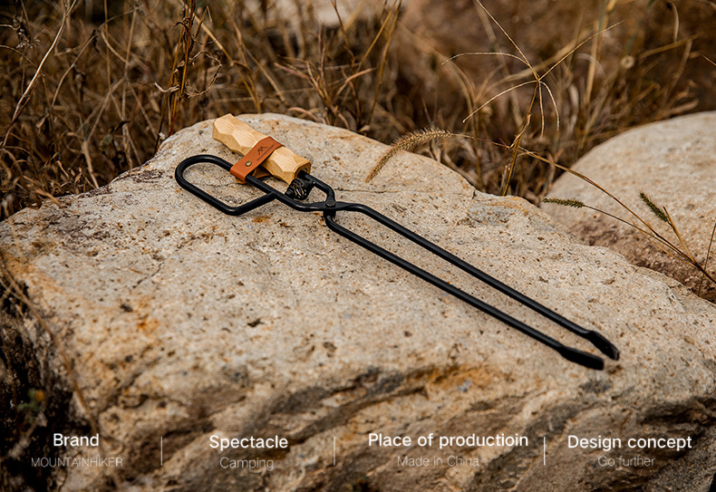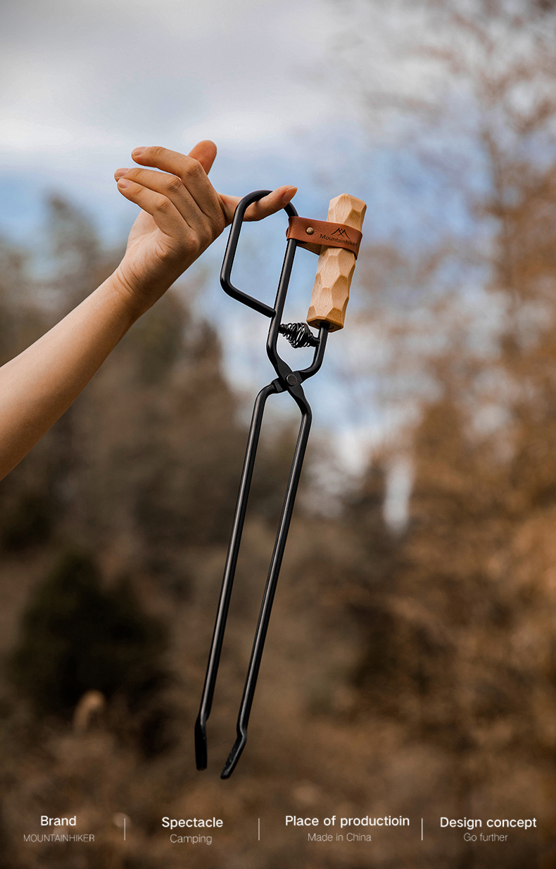 MOUNTAINHIKEOutdoor camping can be done by blowing fire barbecuing iron duck billed fire tongs solid wood handles charcoal clips
