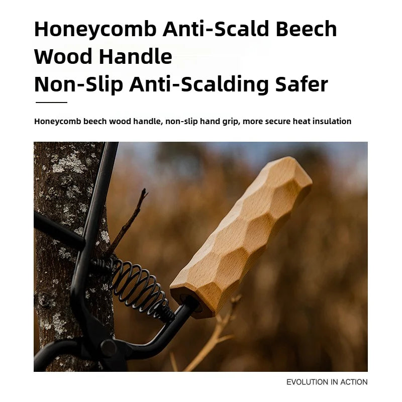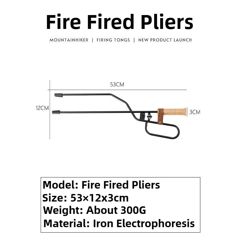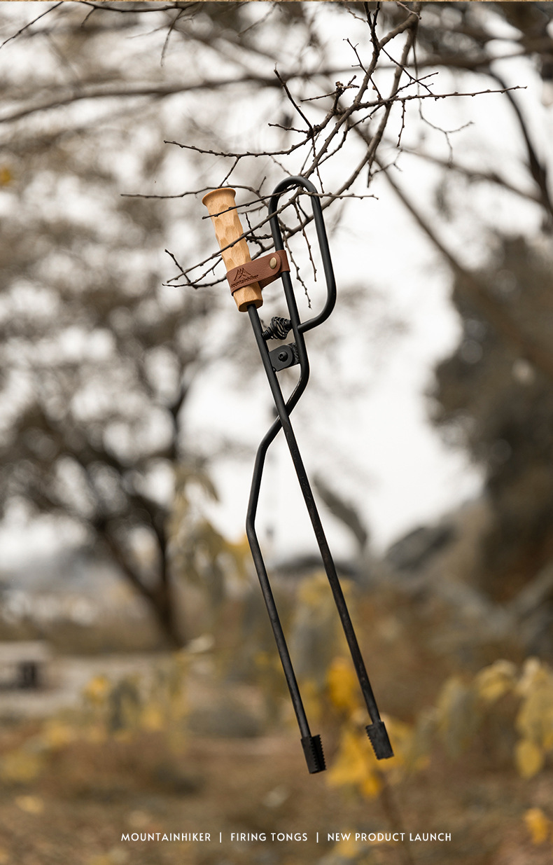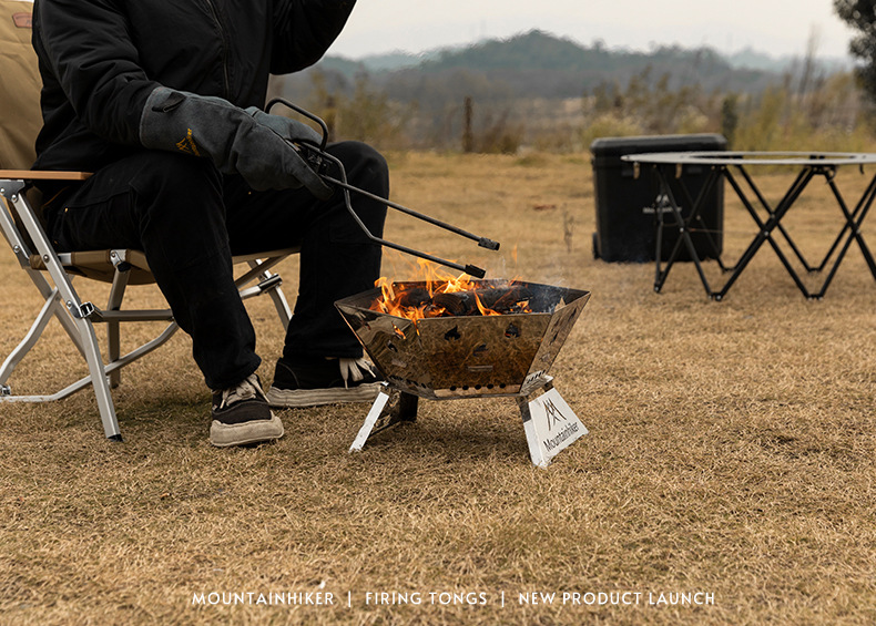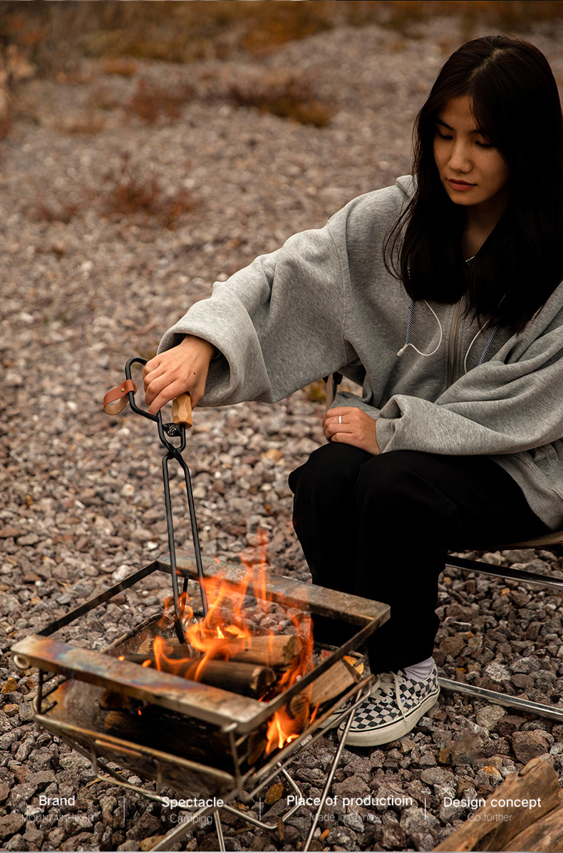MOUNTAINHIKEOutdoor camping can be done by blowing fire barbecuing iron duck billed fire tongs solid wood handles charcoal clips