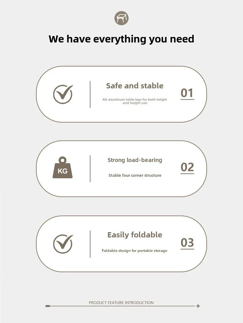 4.Built with all aluminum table legs and a four-corner structure for safety and stability.