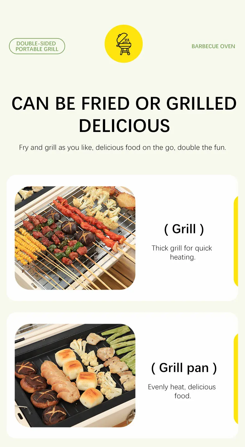 Smoke free feature: Use our smoke-free double-sided chimney grill to enjoy the fun of grilling without worrying about smoke, ensuring a clean cooking experience.
