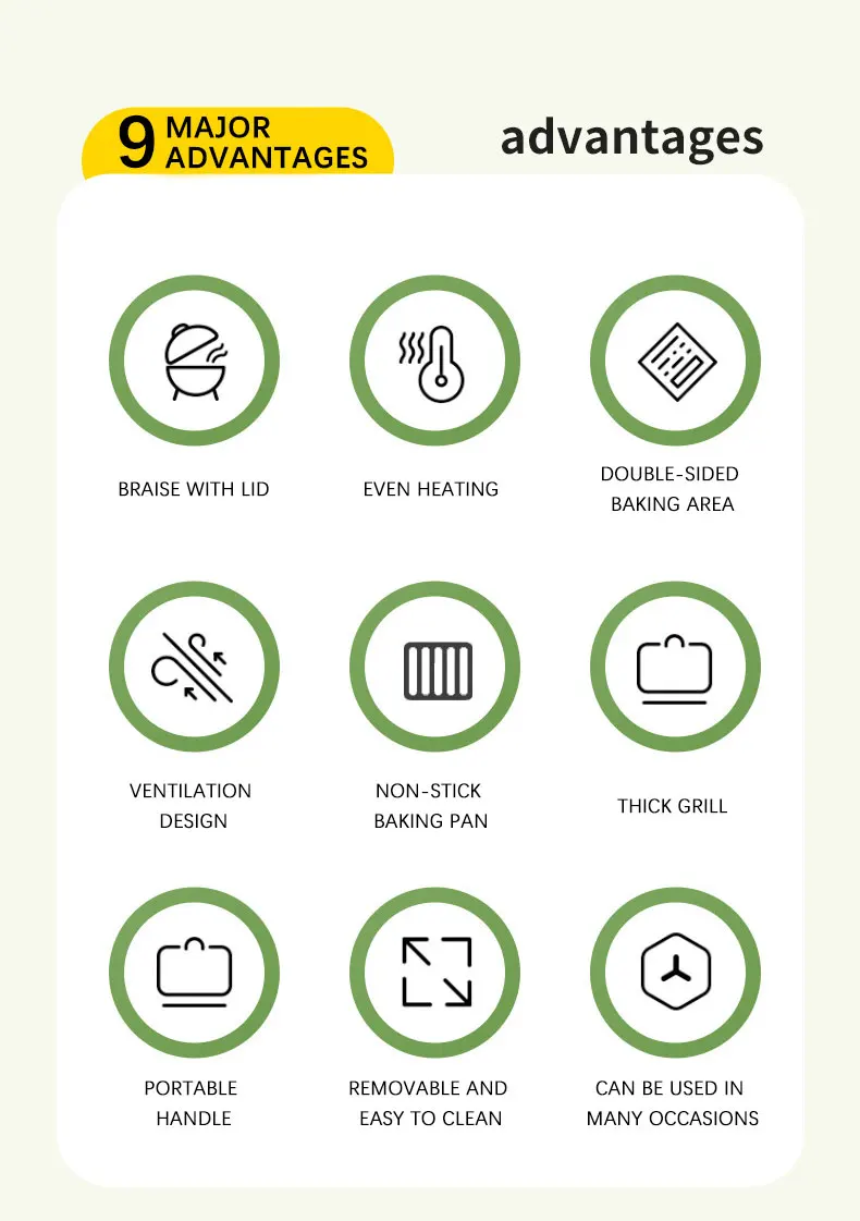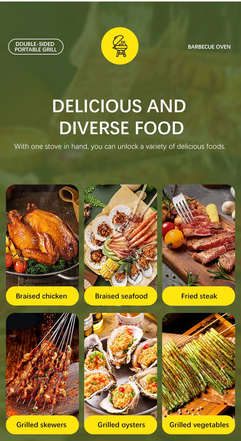 • Multi functional use: This multifunctional grill is suitable for various scenarios, whether it's home or outdoor camping, providing flexible choices for your cooking.