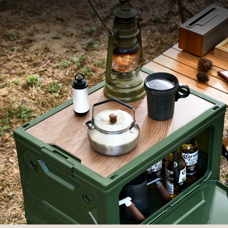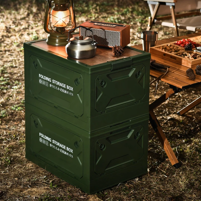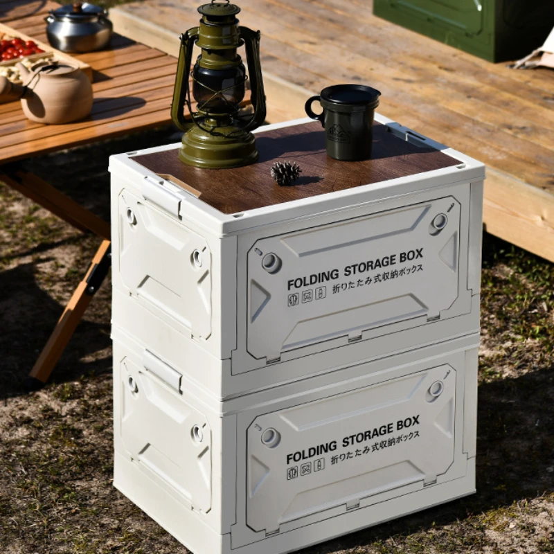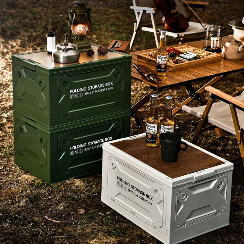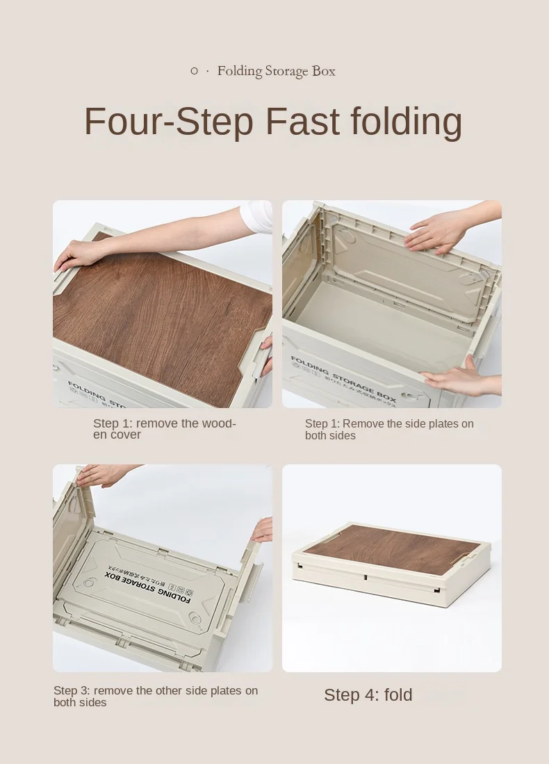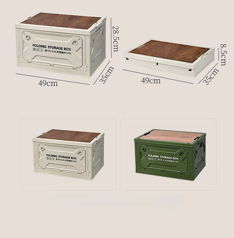 Outdoor Storage Box Camping Portable Travel Storage Box Car Backup Storage Box Wooden Cover Picnic Folding Box organizadores