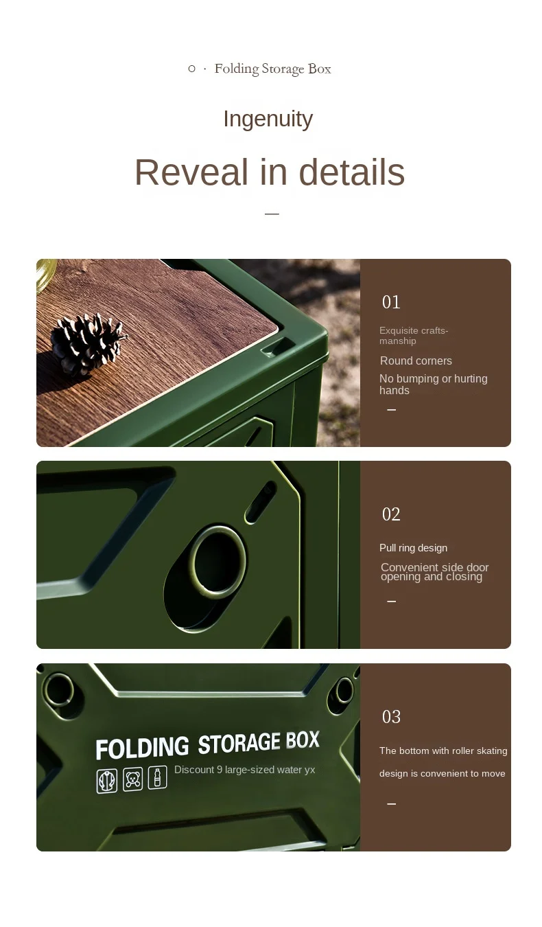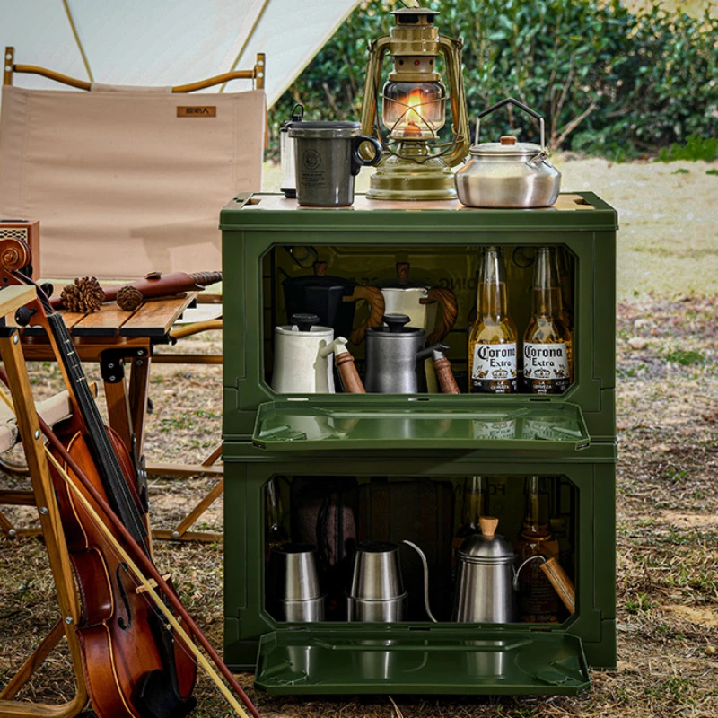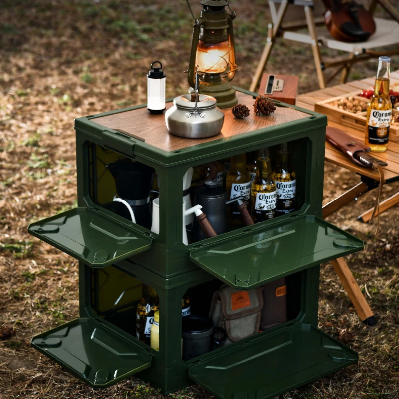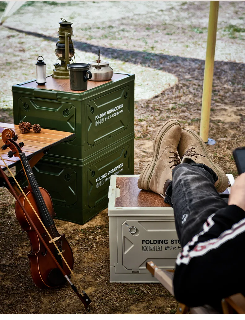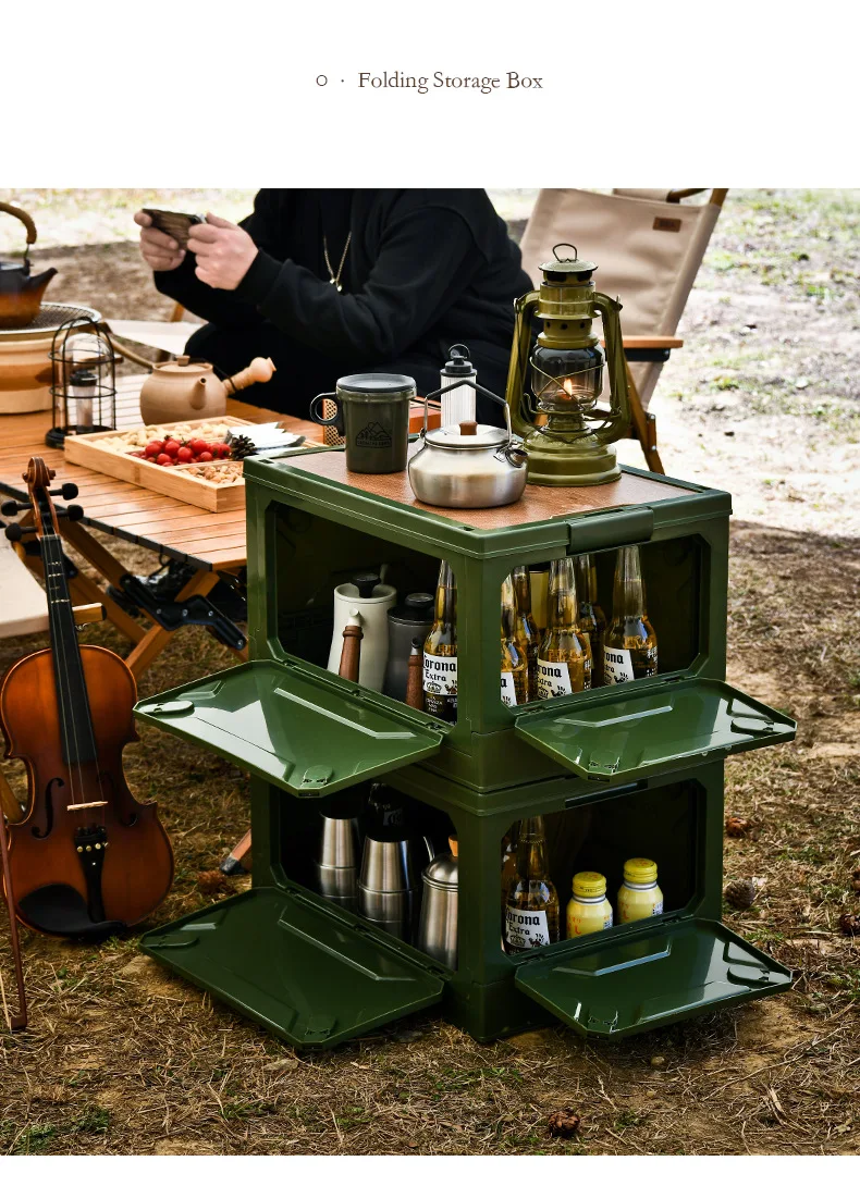 Outdoor Storage Box Camping Portable Travel Storage Box Car Backup Storage Box Wooden Cover Picnic Folding Box organizadores