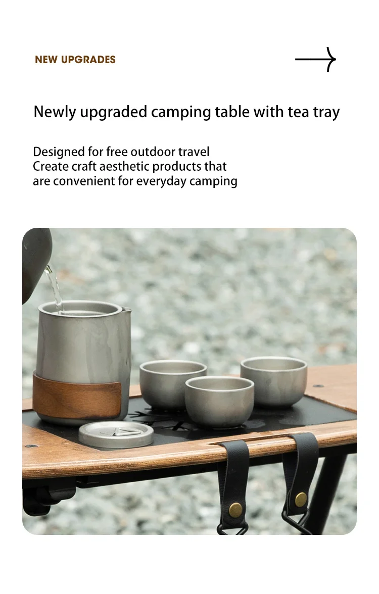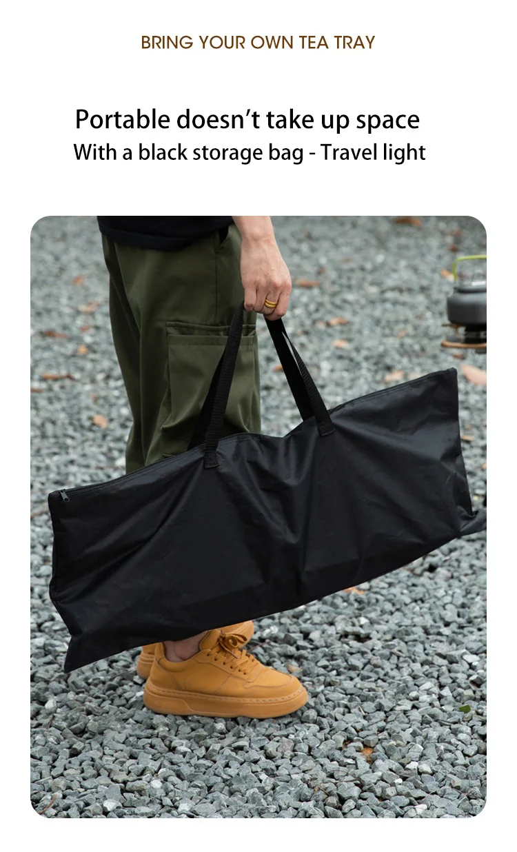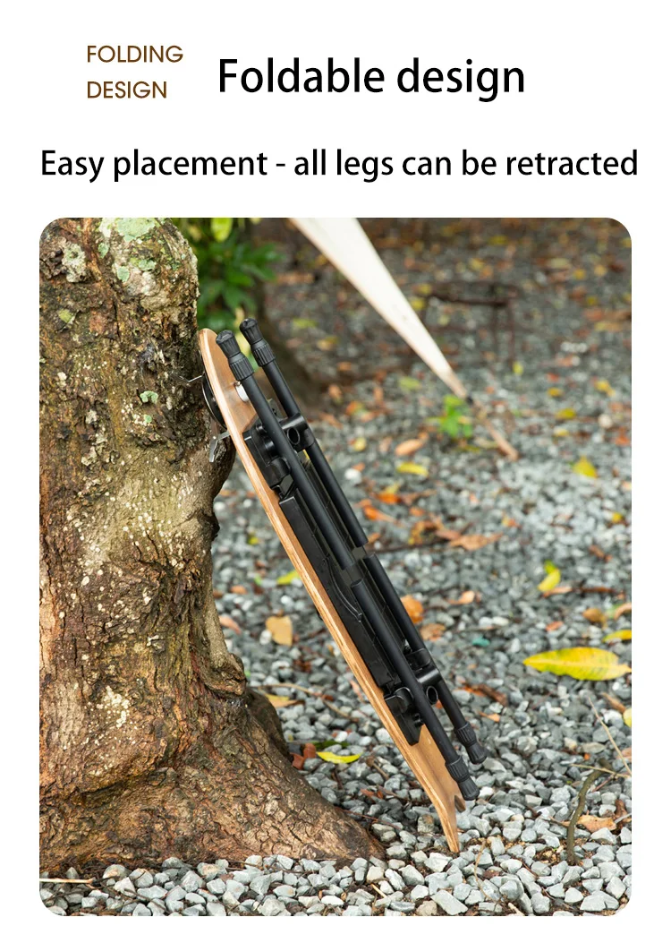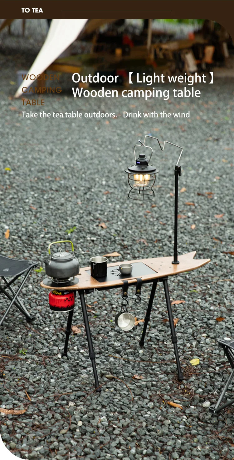 Portable Wood Coffee Table with Storage Bag Folding Creative Tea Desk Light Stand Camping Picnic Table for Outdoor Beach Hiking