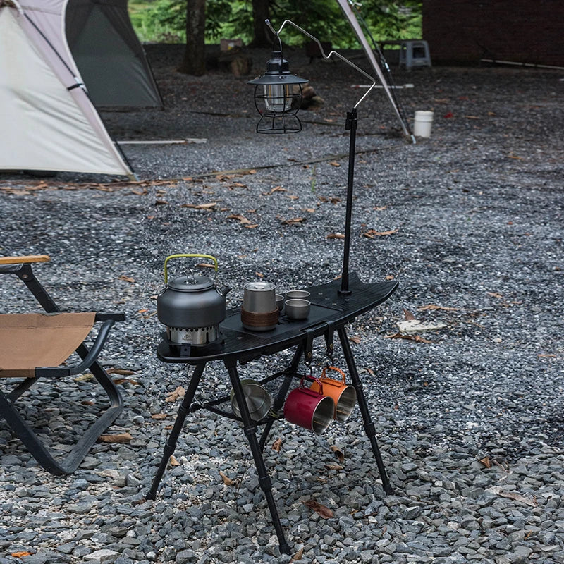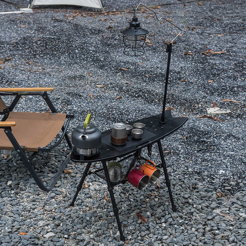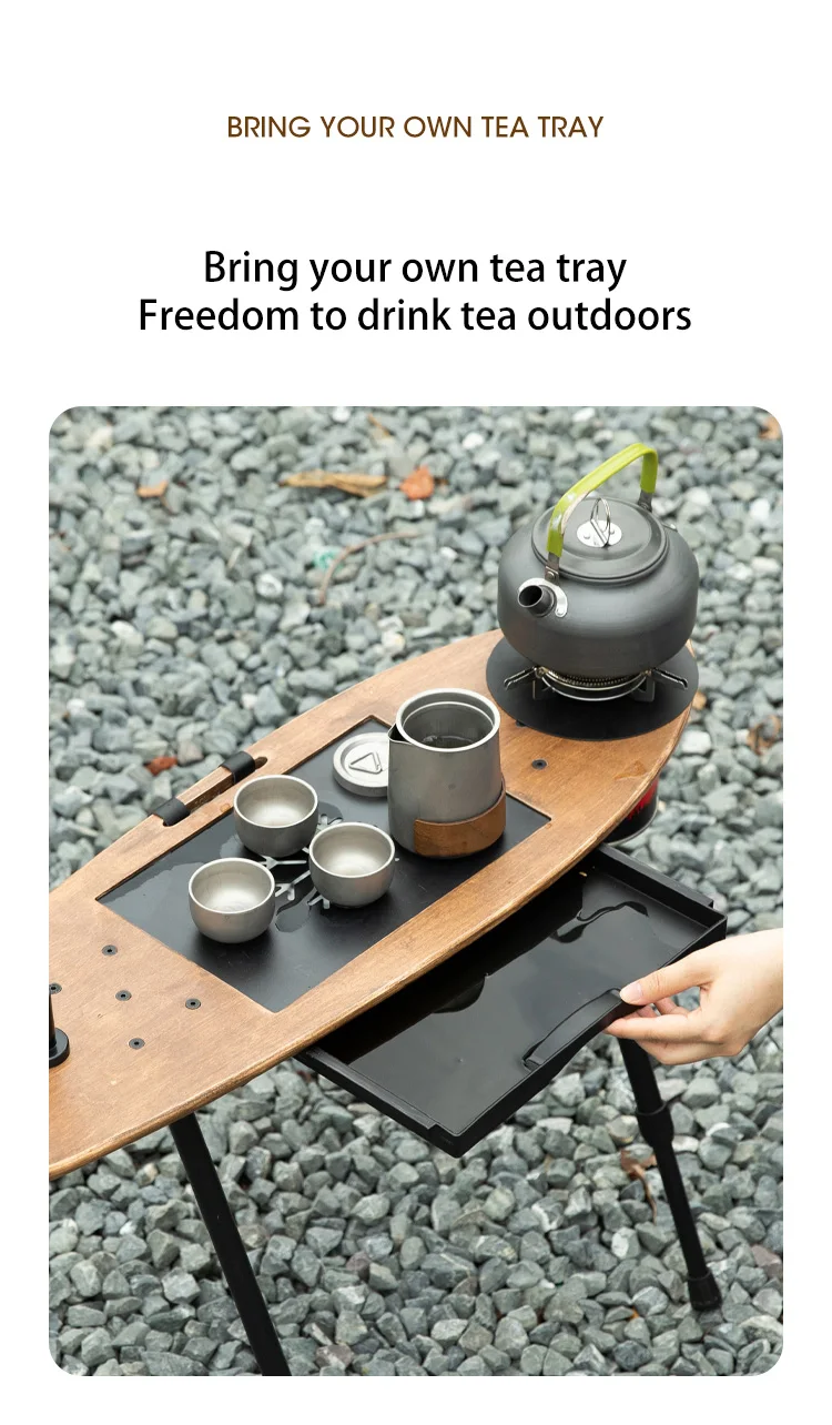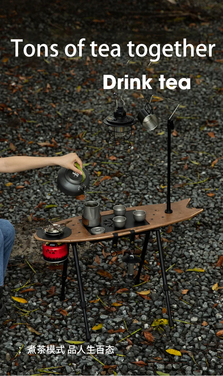 Portable Wood Coffee Table with Storage Bag Folding Creative Tea Desk Light Stand Camping Picnic Table for Outdoor Beach Hiking