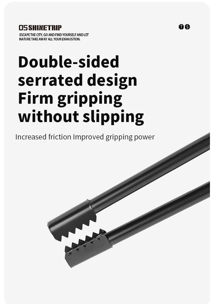 The double-sided serrated design ensures a firm grip, with increased friction and improved grip force. With two specifications to choose from, you can select the one that best fits your needs. When not in use, the clip can be easily stored, saving space and making it convenient to bring along on your outdoor adventures.
