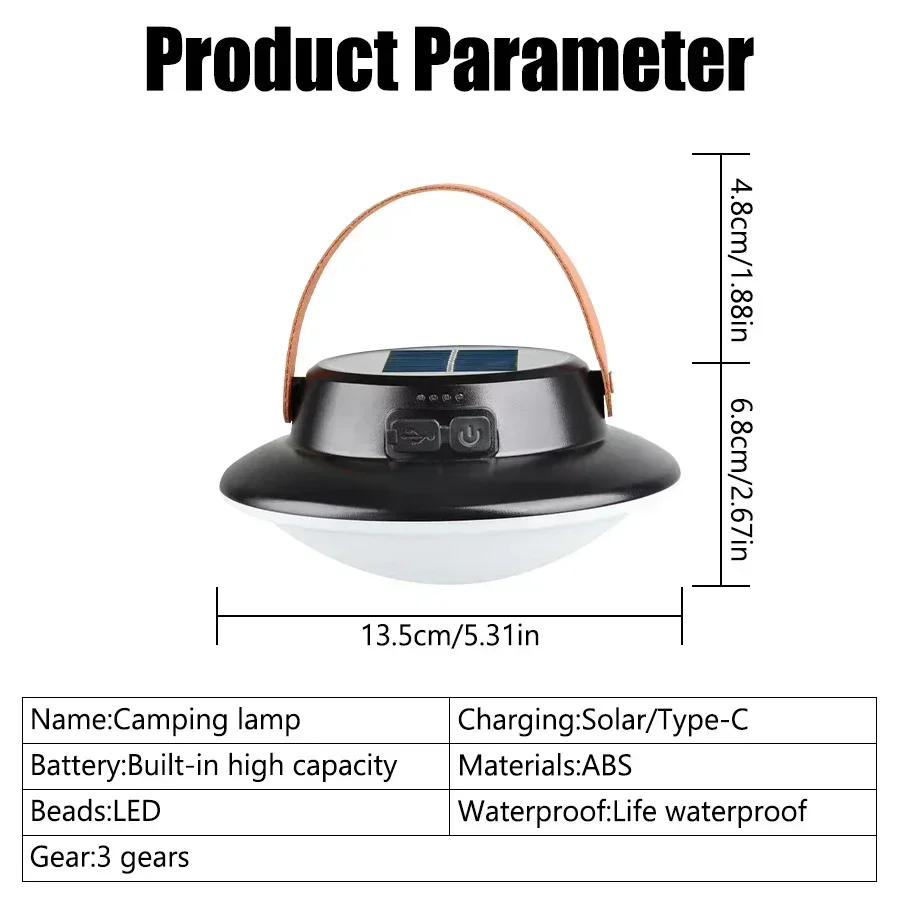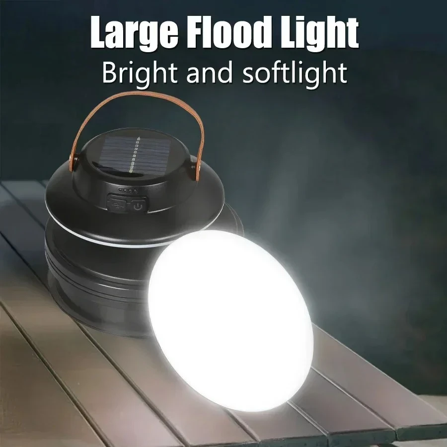 Solar Powered LED Camping Lamp USB Rechargeable Portable Lanterns Outdoor Tent Hanging Torch Emergency Home Repair Work Light