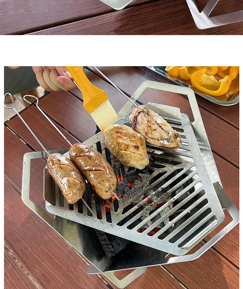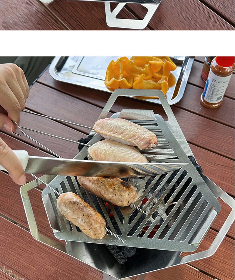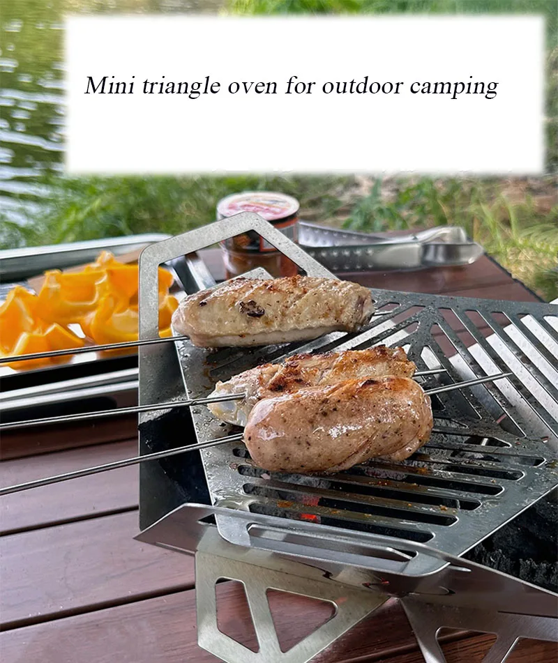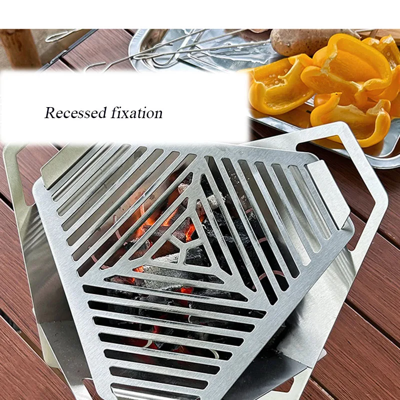 Triangular Grill Rack Outdoor Card-type Barbecue Rack Lightweight Windproof And Dismountable Camping Triangular Fire Pit